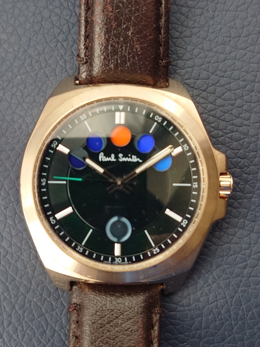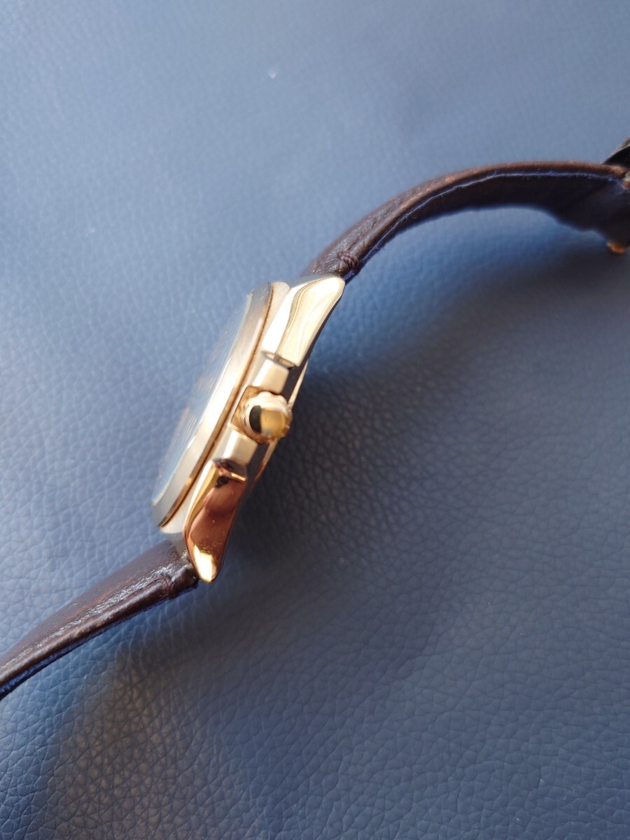 シチズンのF335というムーブメントを使っており、クォーツでありながら機械時計と同じスイープ運針をする珍しい時計となっています。