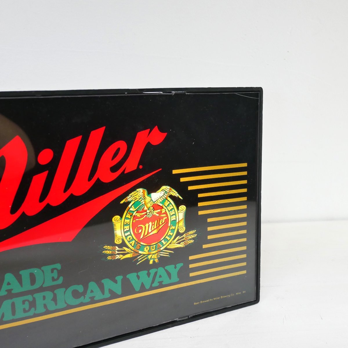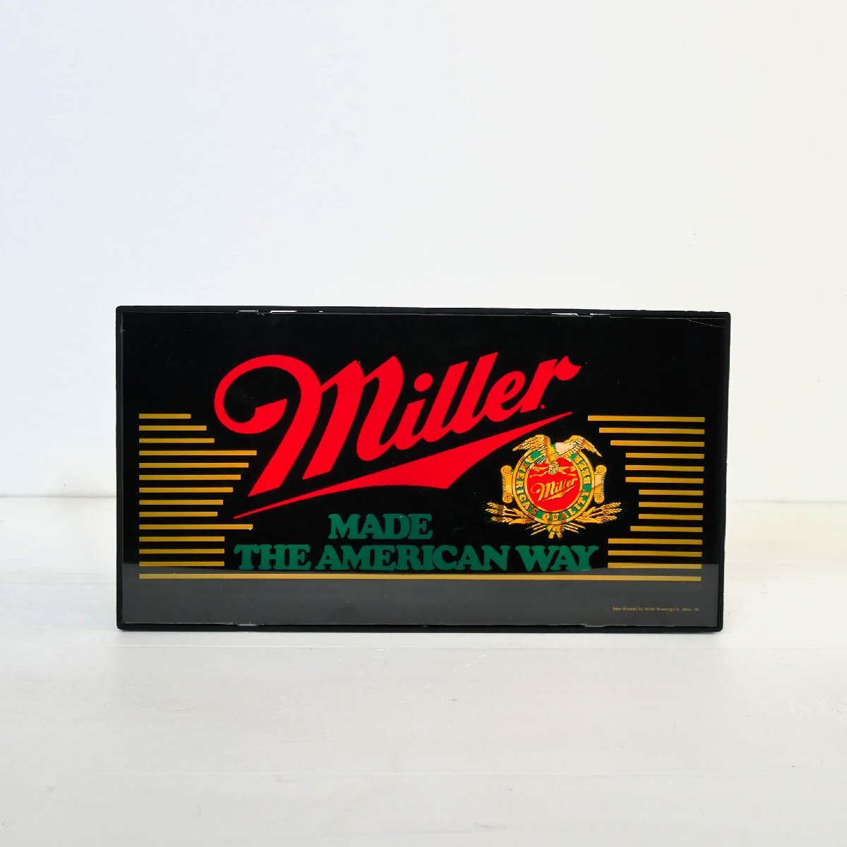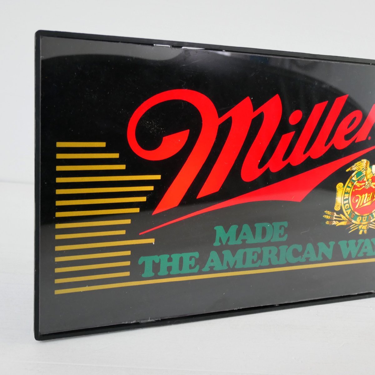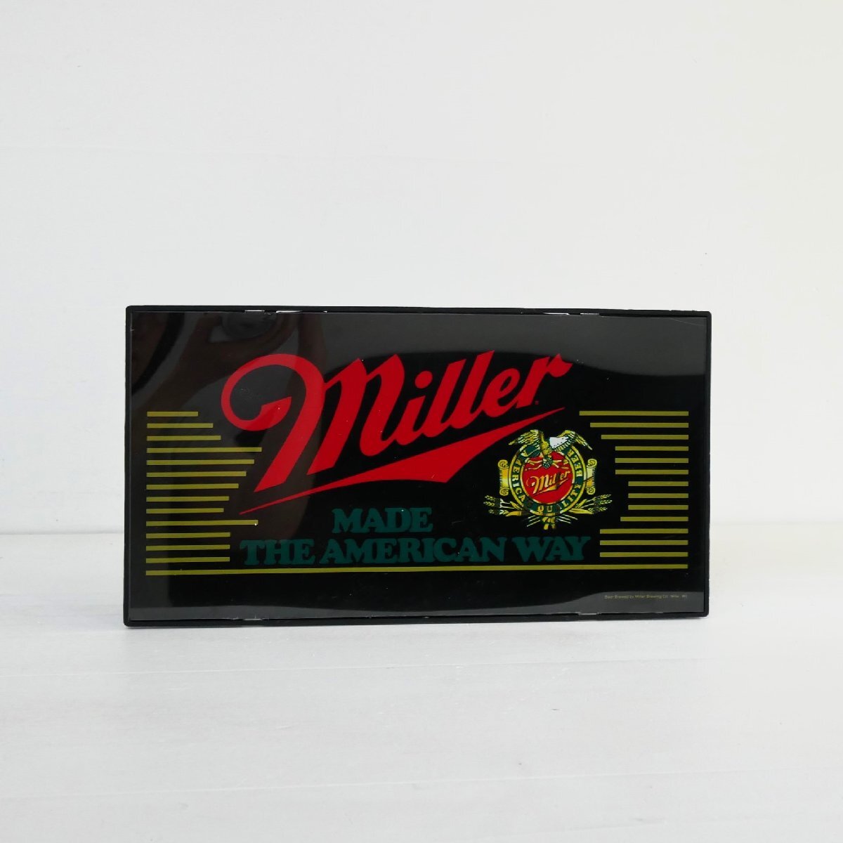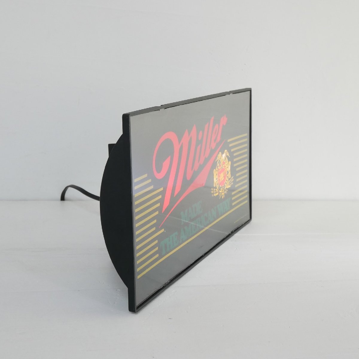 | 商品説明 explanation | アメリカのビール「ミラー」のライト付きアドバタイジングサインです。 中にオリジナルの電球(E12,10W)が2個入っています。 バーの壁面ディスプレイなどにいかがでしょうか。 本体:プラスチック ON,OFFのスイッチはありません。 |