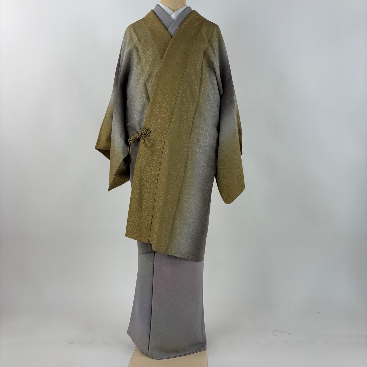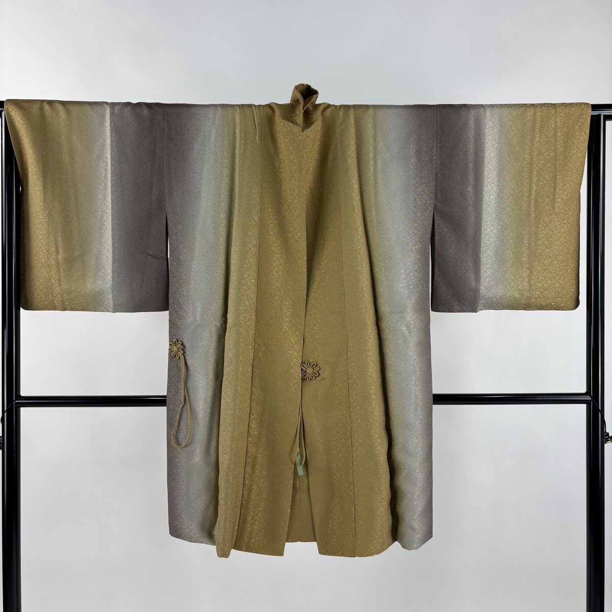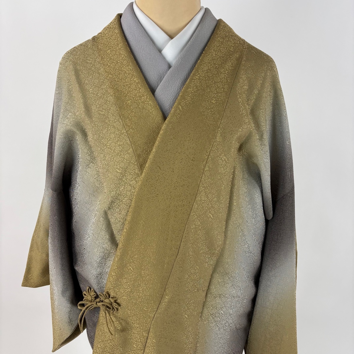 | 道中着 美品 名品 和装コート 地紋 ぼかし 黄土色 身丈99 裄丈66 M 正絹 【中古】 |