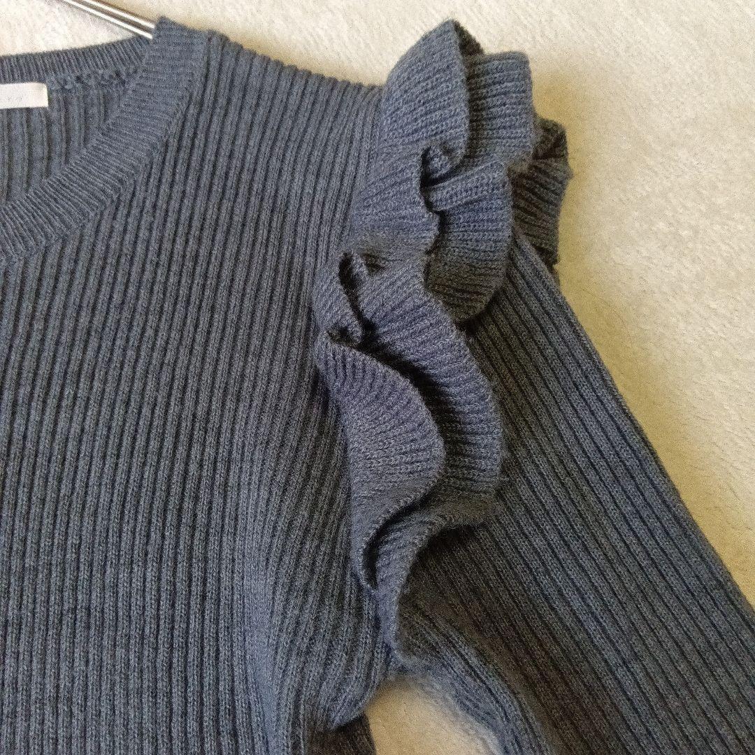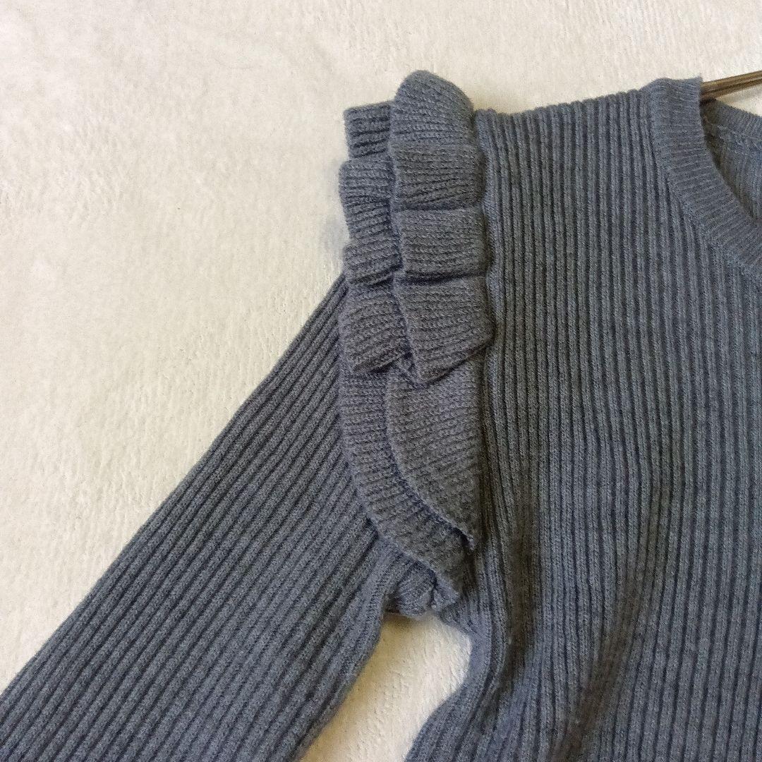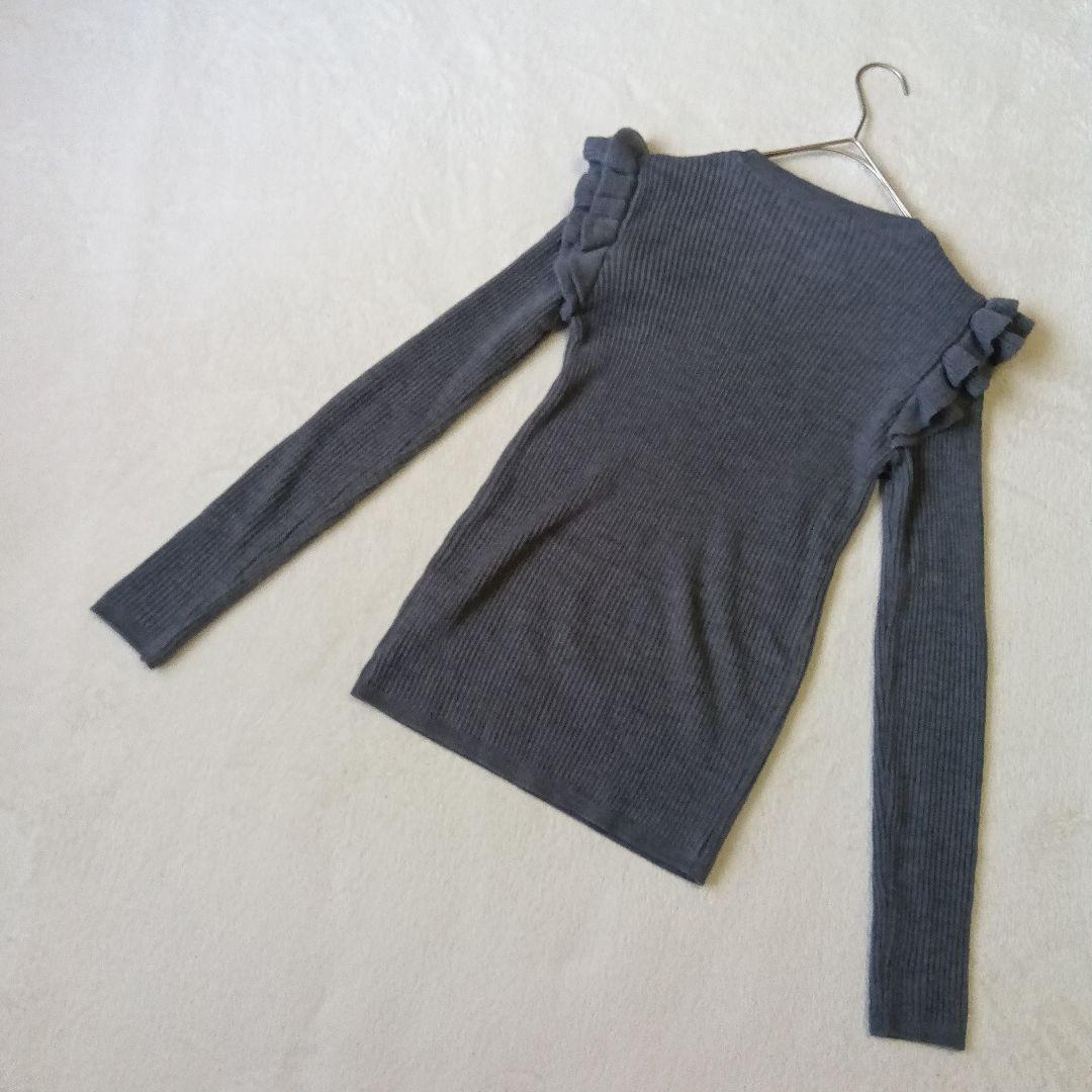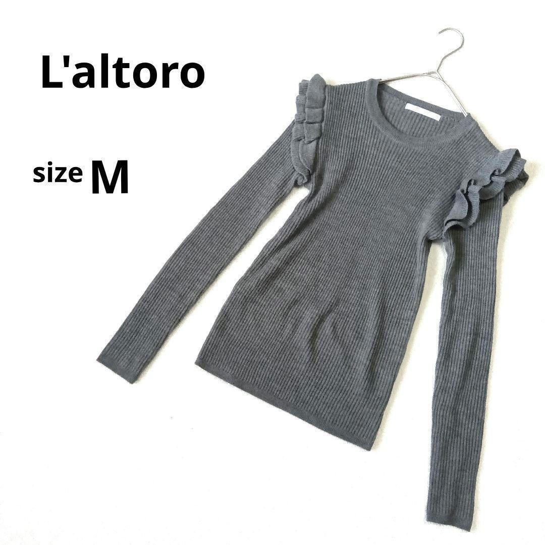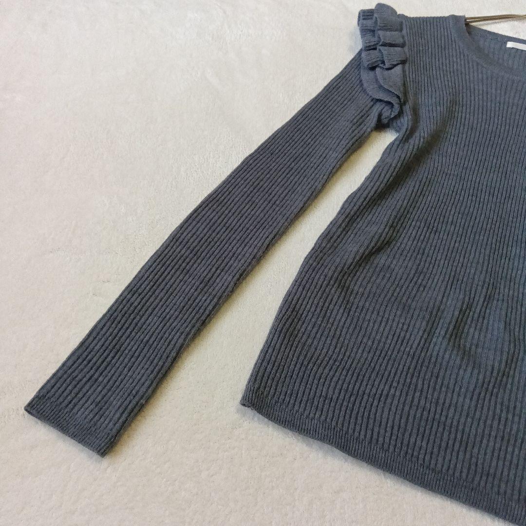 L'altoro ラルトロ フリルスリーブニットカットソーM グレー 韓国製 C1B26B