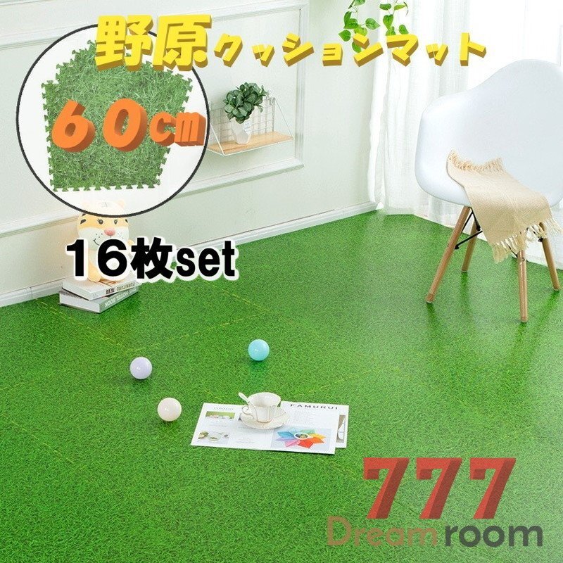 60cm 大判 野原 クッションマット 16枚SET ジョイントマット 緑 芝生 セーフティーマット プレイルーム 子供 滑り止め 防音 衝撃吸収