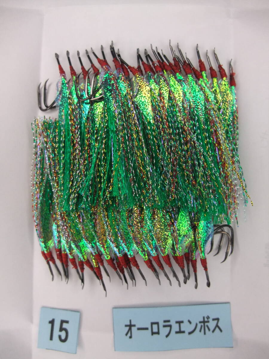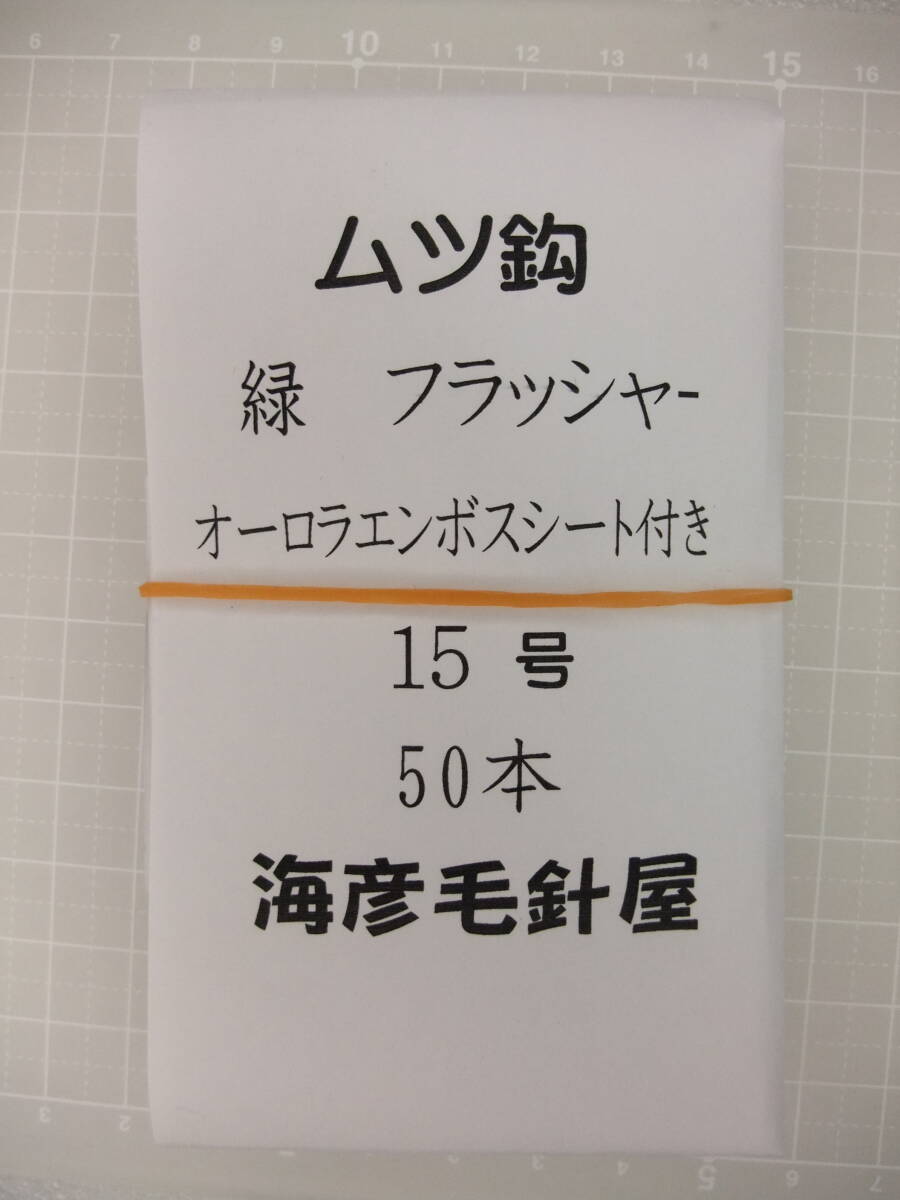 NSブラック ムツ15号毛針 緑フラッシャー オーロラエンボスシート付き  50本セット