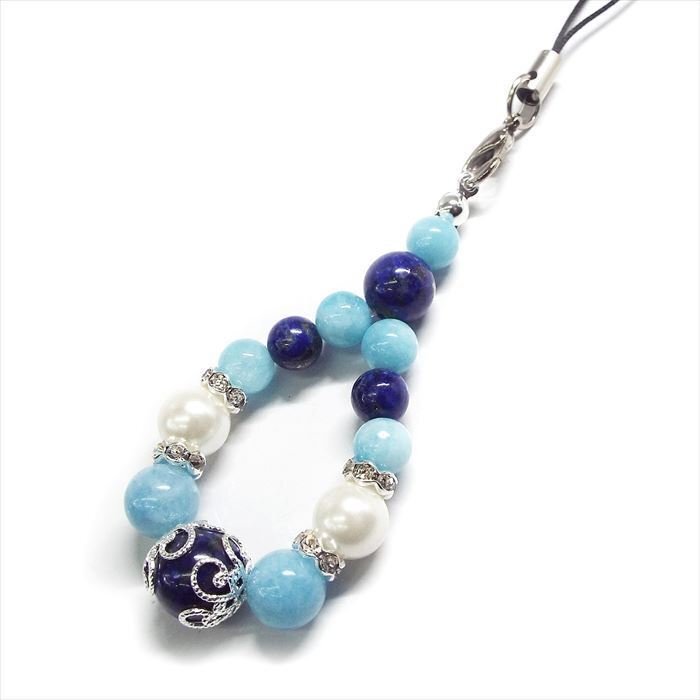 | 【STONE KITCHEN 天然石 パワーストーン】 ☆空をイメージした素敵なデザインの天然石ストラップ☆ やっぱり可愛いストラップはオシャレ女子に必要なアイテム☆ そこで乙女心をくすぐるキュートで可愛いストラップをご紹介します♪ カバンやケータイ・スマホに付けて恋愛運をUP!!! スマホ・ケータイをもっと可愛くデコレーションしちゃおう!! バックチャームとしてもおススメ♪ 長さ:約5.5cm(ストラップ紐・カニカン部分は除く) 素材:ラピスラズリ 約6mm・約8mm・約10mm ブルークォーツ 約6mm・約8mm シェルパール 約8mm 1点 注意事項 ※金属部分は汗や汚れ等で変色する場合がございます。気になる場合は 金属磨きや布等で軽くふき取る事をおすすめします。 ※石の種類によっては、艶を引き出すことを目的として、ワックスや着色加工がされているものもあります。 ※表示のサイズは必ずしも最大値・最小値のサイズのものが入っているわけではございません。 ※天然石のため同じものでも色味・模様などが異なります。 ※照明の具合で実際とは色合いが異なる場合がございます。 また、天然素材特有のクラック・内包物を有する場合がございます。予めご了承下さい。 | |||