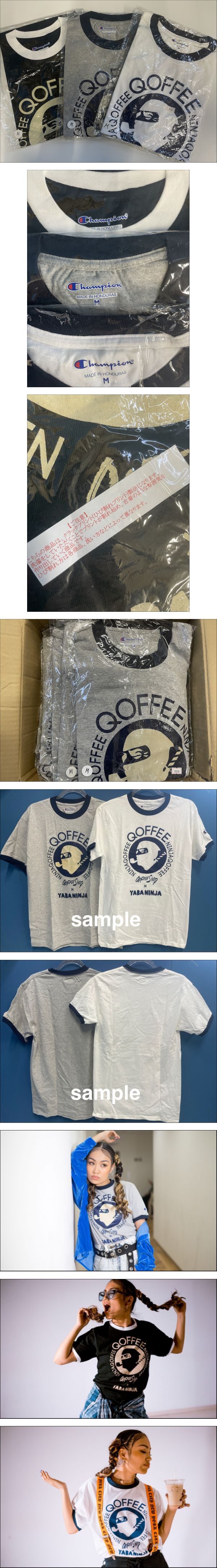 11-B77/5-100 【新品未使用未開封】QOFFEE×YABANINJA コラボTシャツ RIEHATA Champion ユニセックス Mサイズ 3色(WH/GY/BK)36枚セット | |||