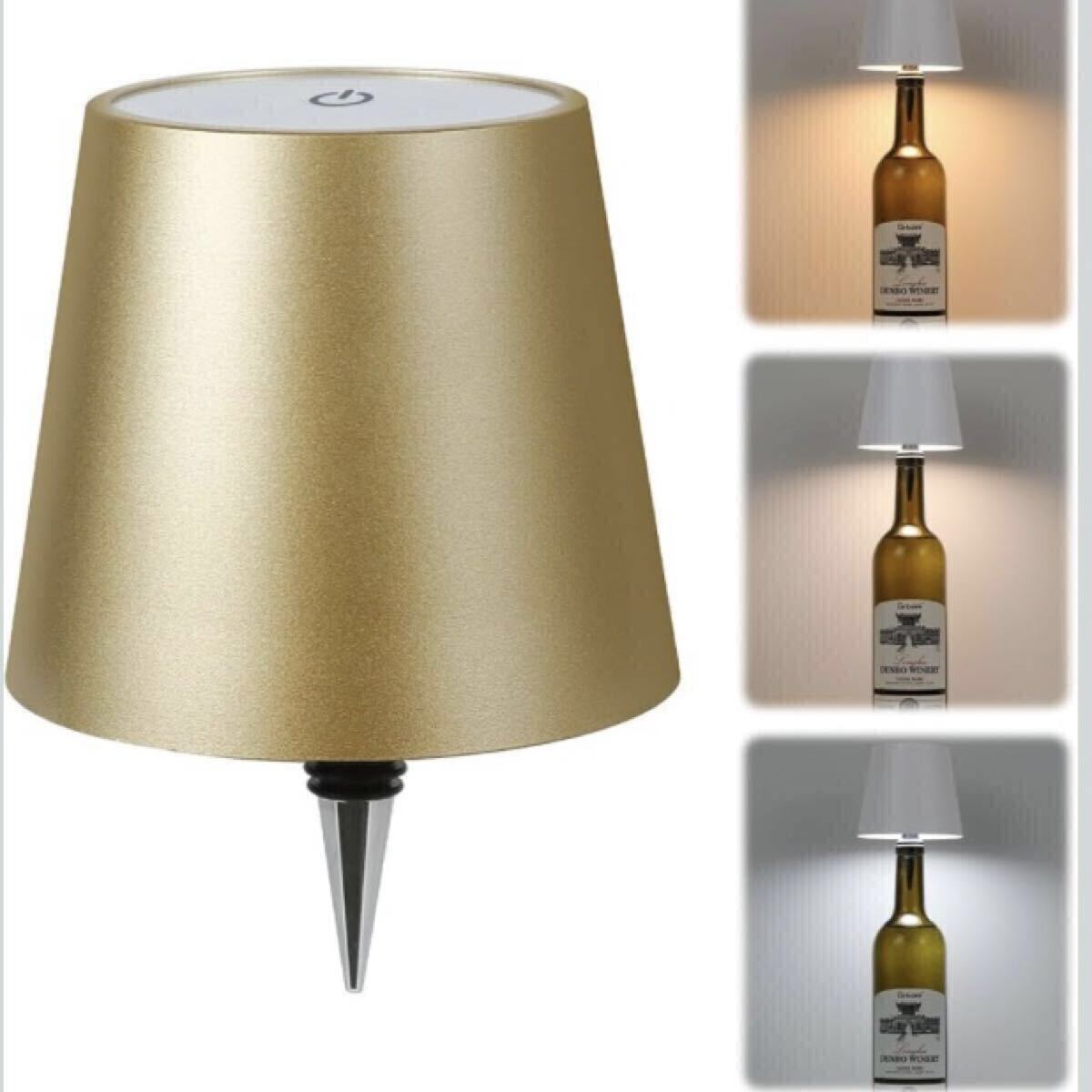 【新品】ボトル用LED照明キット ワイン ウイスキー 3色切替式 調光機能付き 充電式タッチセンサーランプ レストラン バー ゴールド