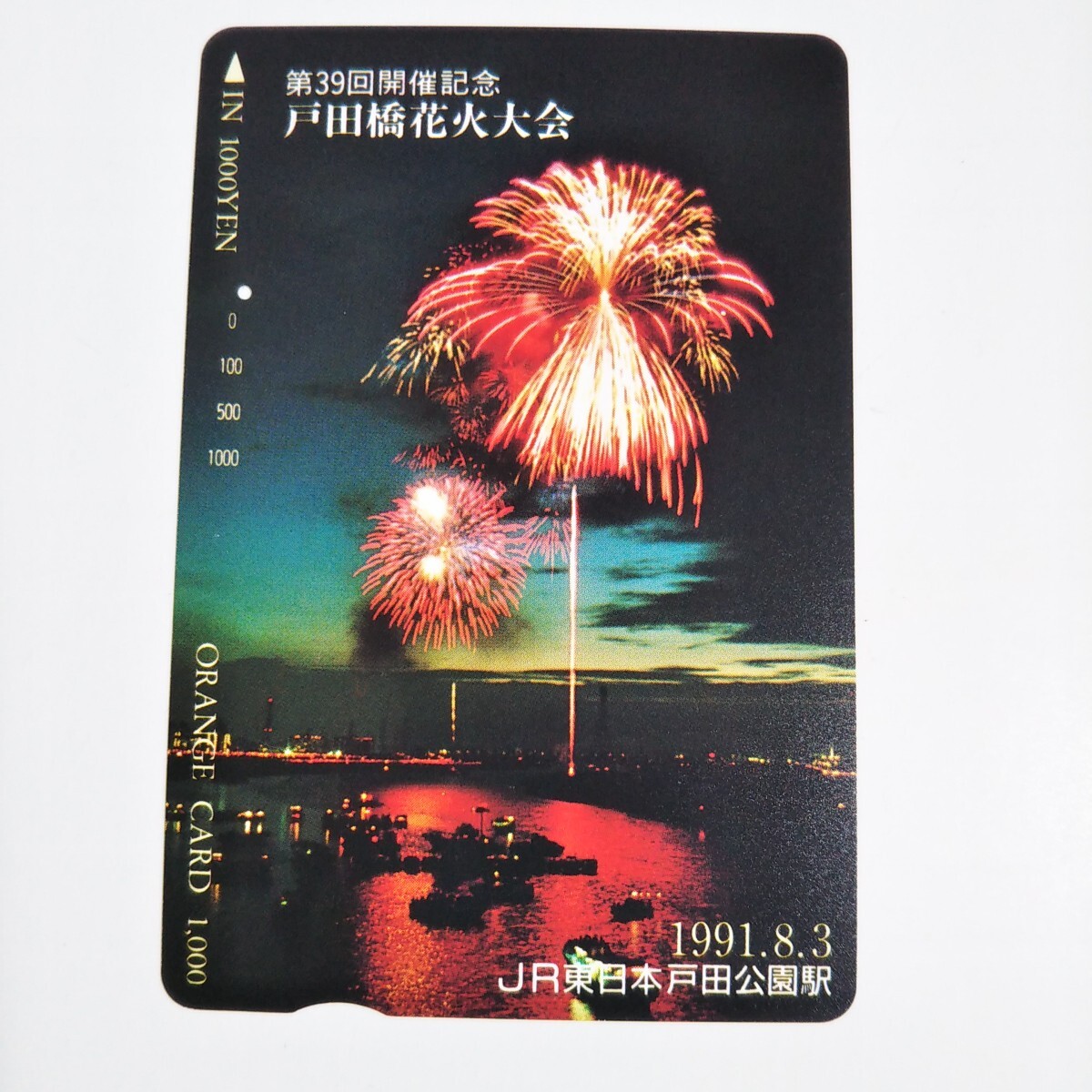 JR東日本・戸田公園駅 第39回開催記念 戸田橋花火大会 オレンジカード 使用済み 1穴