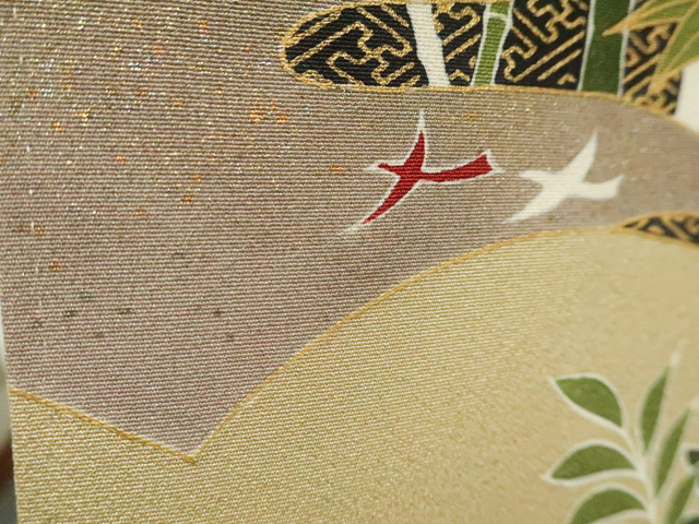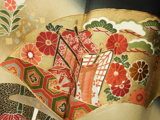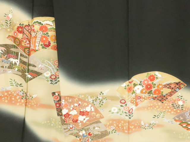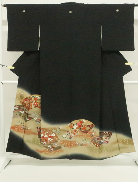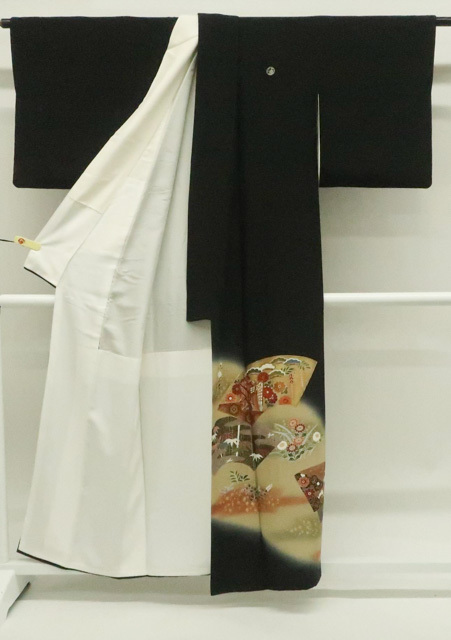 リサイクル商品のため、上衽に薄しみがございます。 八掛にしみがございます。 左胸に薄汚れがございますが着用可能なお品です。 地色は黒です。 1枚目の画像が近いお色かと思われます。 素材は正絹です。 |