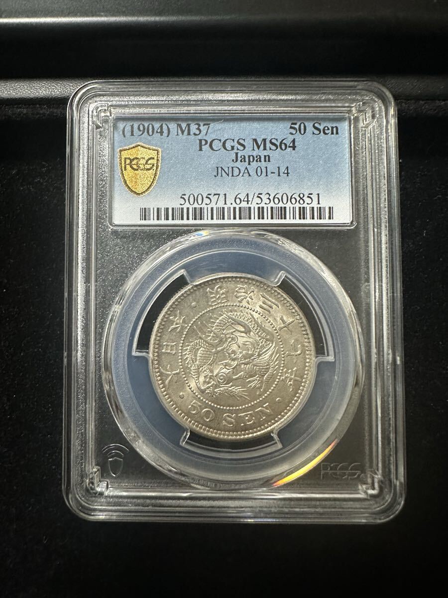 【48】竜50銭銀貨 明治37年 PCGS MS64 五十銭 1円銀貨 貨幣 古銭 硬貨 アンティーク 日本銀貨 スラブコイン NGC 鑑定済み
