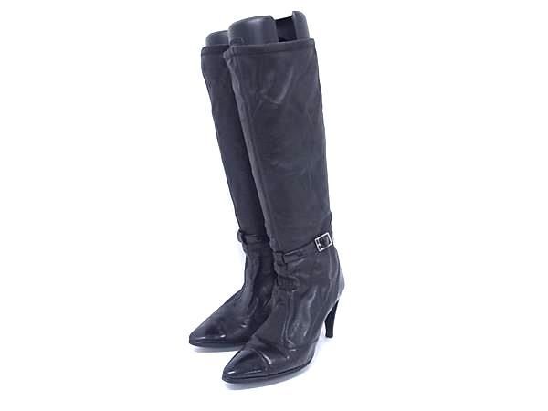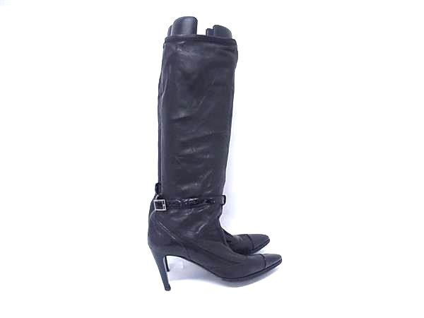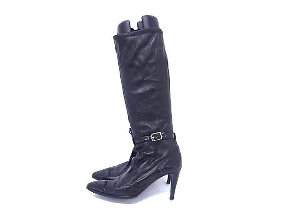 1円 CHANEL シャネル ココマーク レザー ロングブーツ ヒール 表記サイズ 371/2C (約24.0cm~24.5cm) 靴 シューズ ブラック系 BP2873