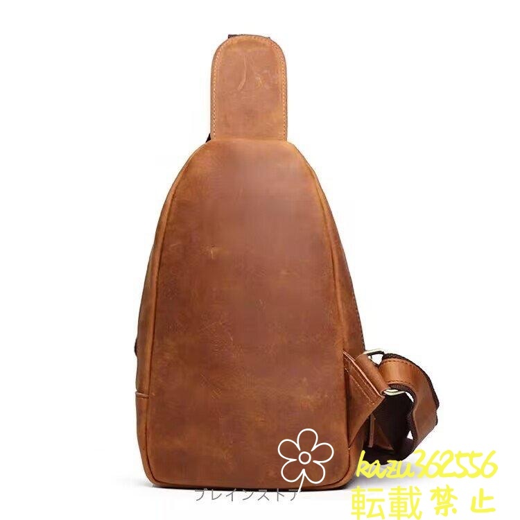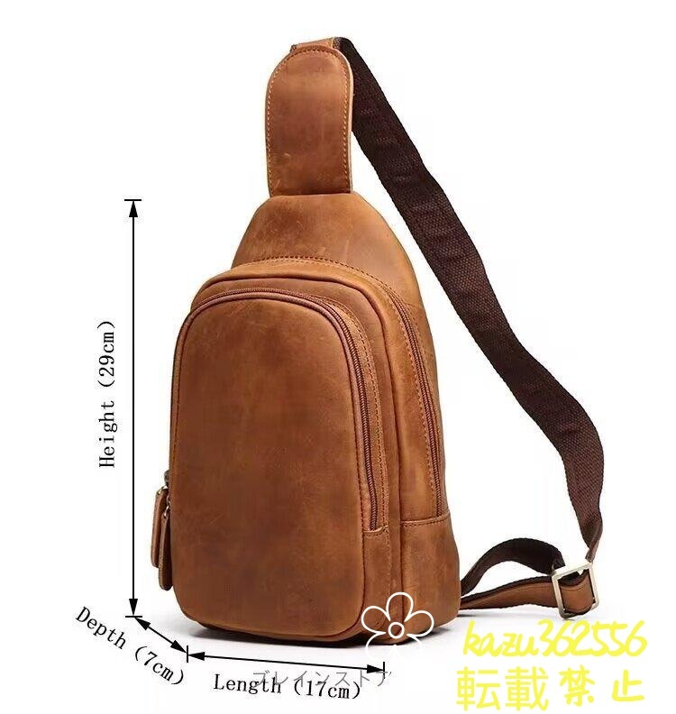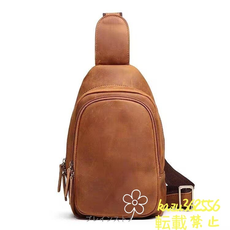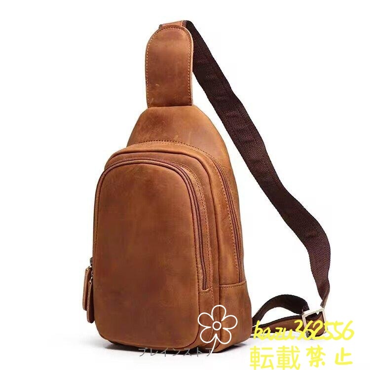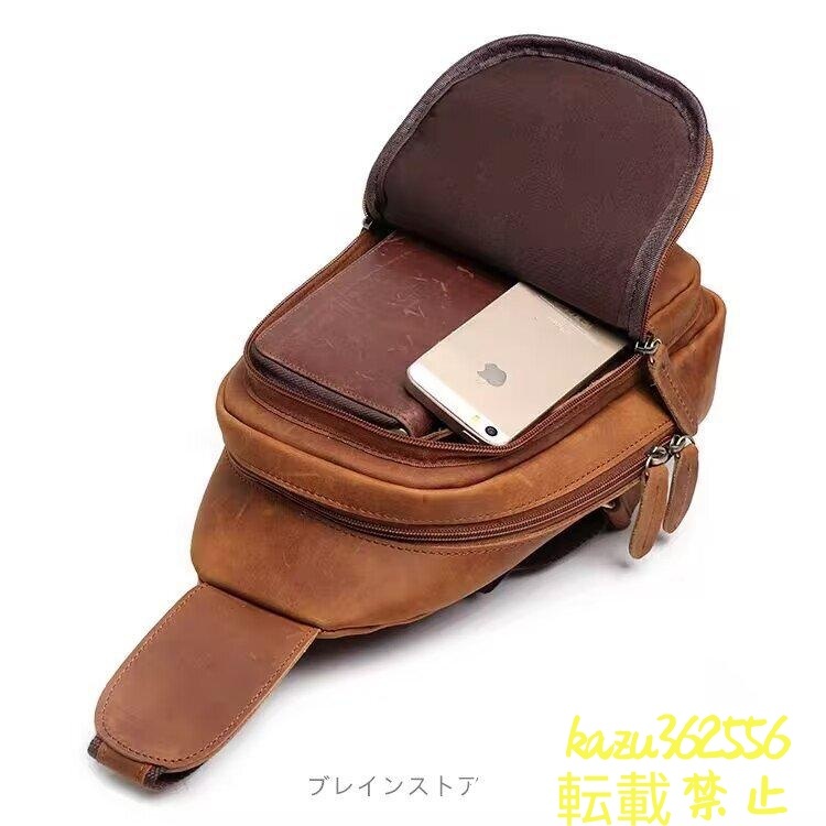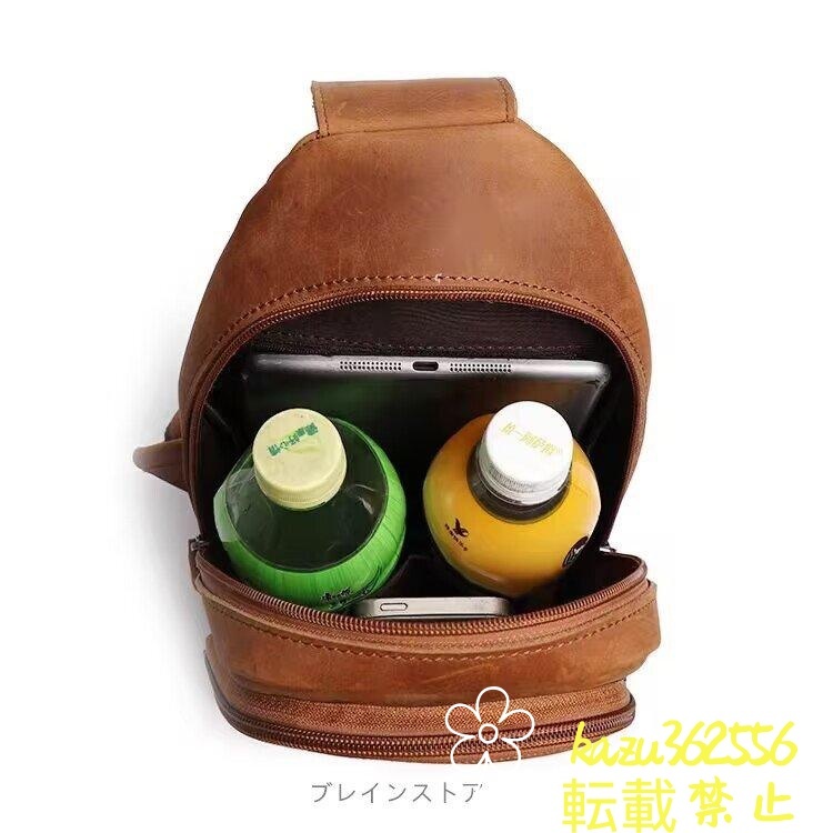 強力推薦★レザー ボディバッグ メンズ 本革 レザー ワンショルダーバッグ 牛革 斜めがけ ブラウン iPad mini対応 カジュアル自転車鞄