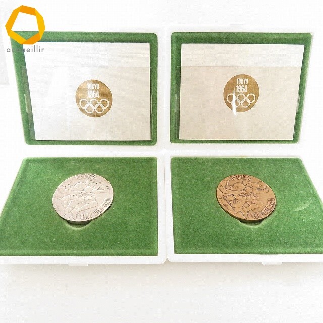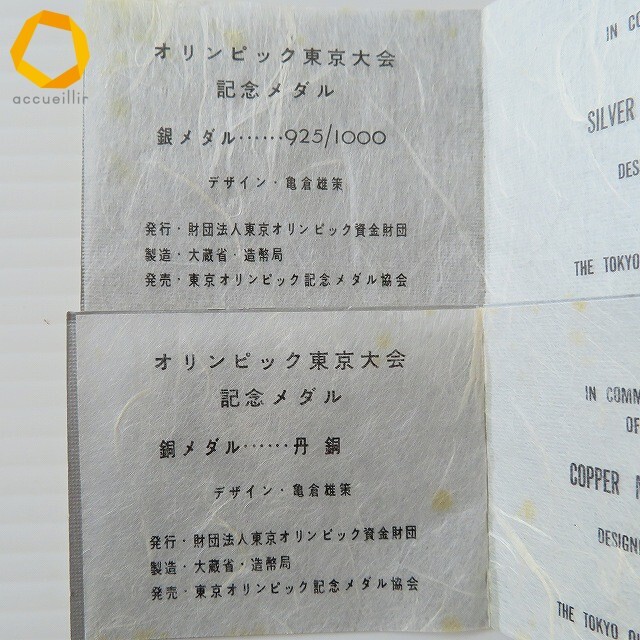 #anze 東京オリンピック 1964年 記念メダル シルバー 銅 925 丹銅 2枚セット 亀倉雄策デザイン ケース付き [976478]