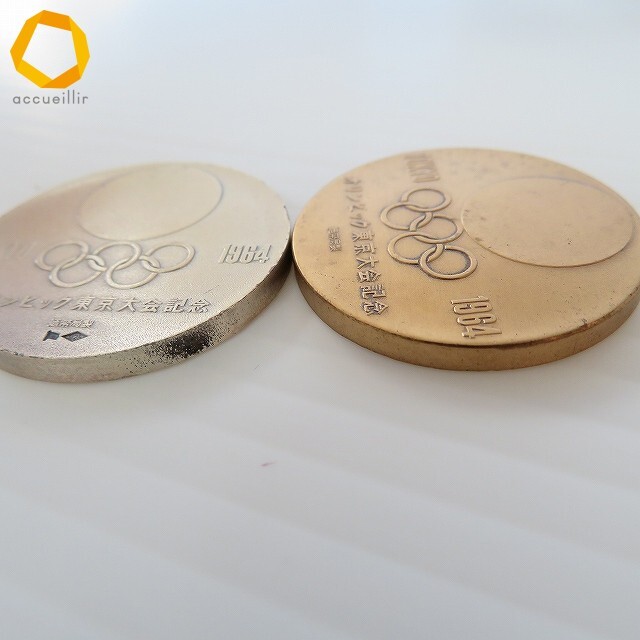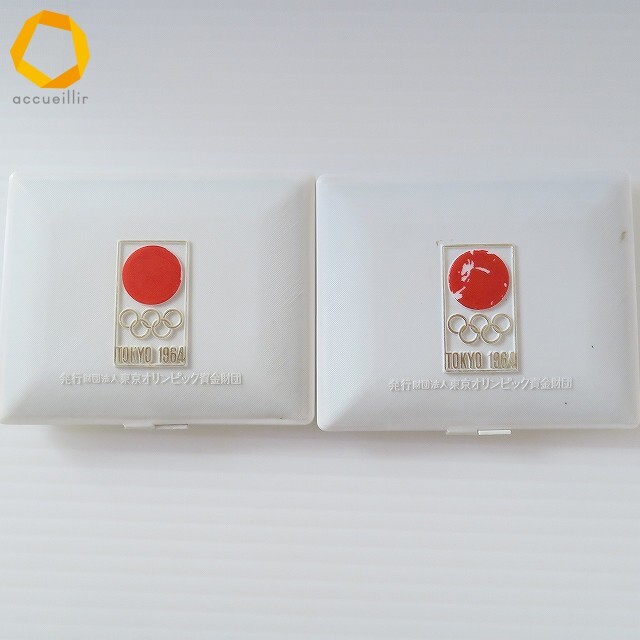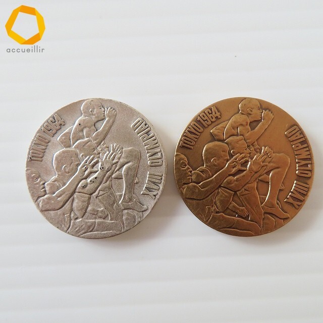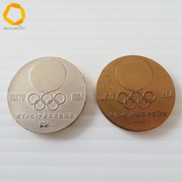 ●商品名(タイトル):#anze 東京オリンピック 1964年 記念メダル シルバー 銅 925 丹銅 2枚セット 亀倉雄策デザイン ケース付き [976478]