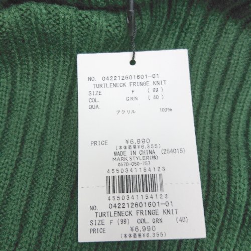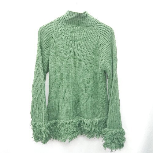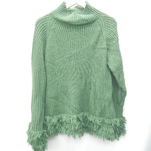 ◇ ◎ ●未使用● ⊇ EMODA フリンジデザイン 長袖 ハイネックセーター サイズF グリーン レディース E