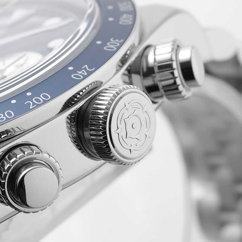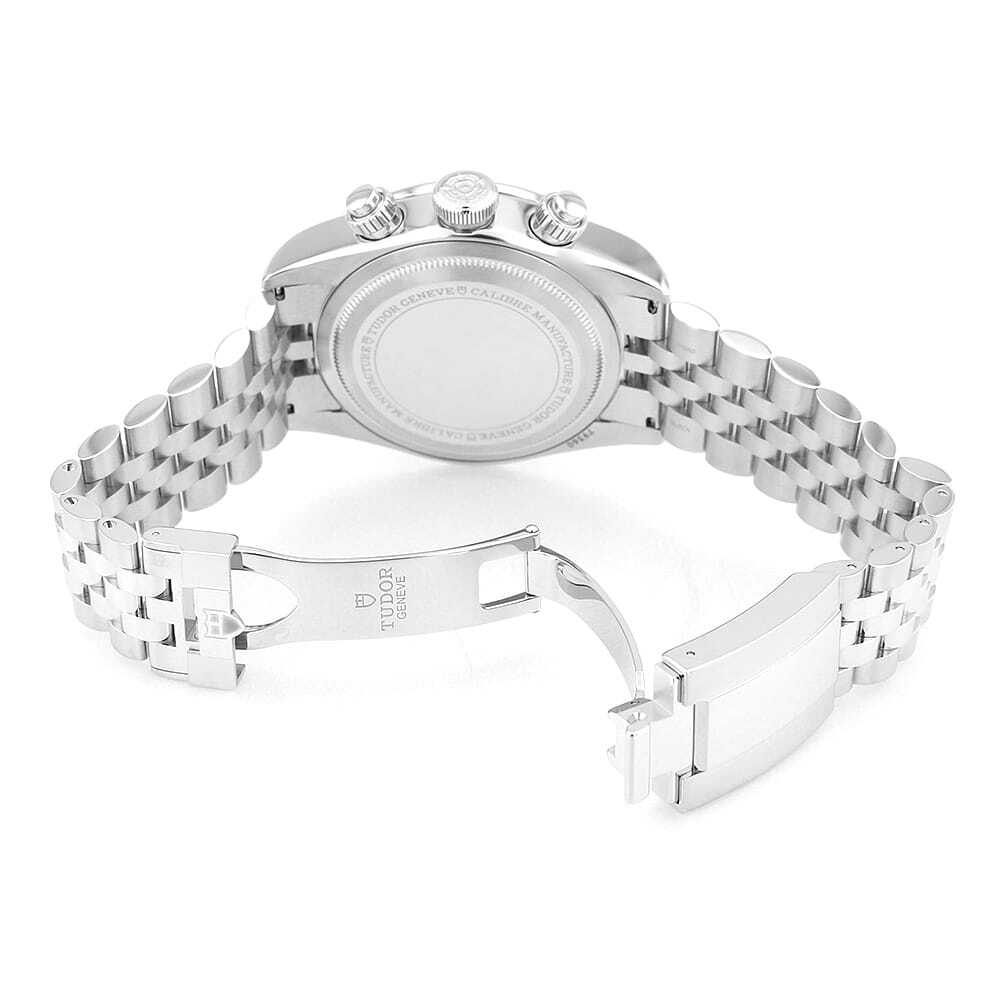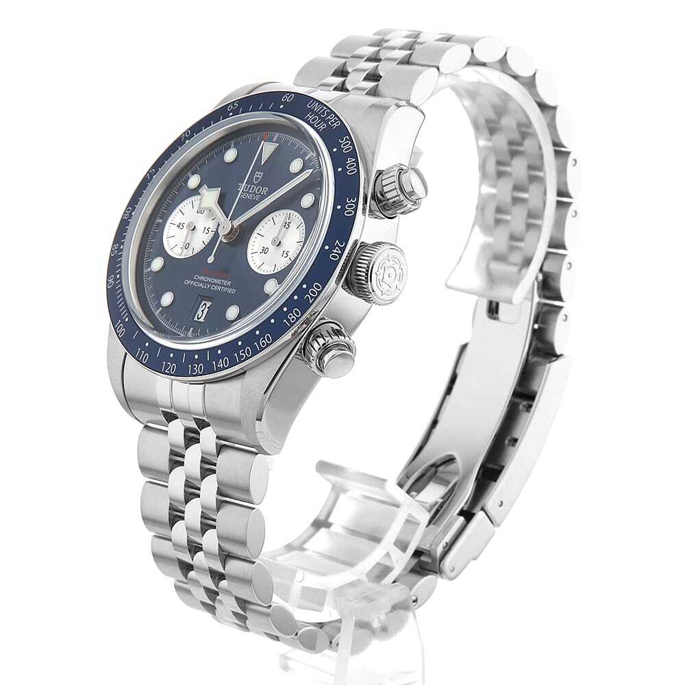 | モデル情報 | こちらの"ブラックベイ クロノ"は、コラムホイールと垂直クラッチを採用した高性能自動巻きマニュファクチュールキャリバーを搭載する、正統派スポーツクロノグラフモデルです。コントラストの際立つサブカウンターが美しいブティック限定モデルになります。チューダーが誇る豊かな青の伝統をコレクションの全ラインに取り入れるという、熱い思いを示している1本です。 |