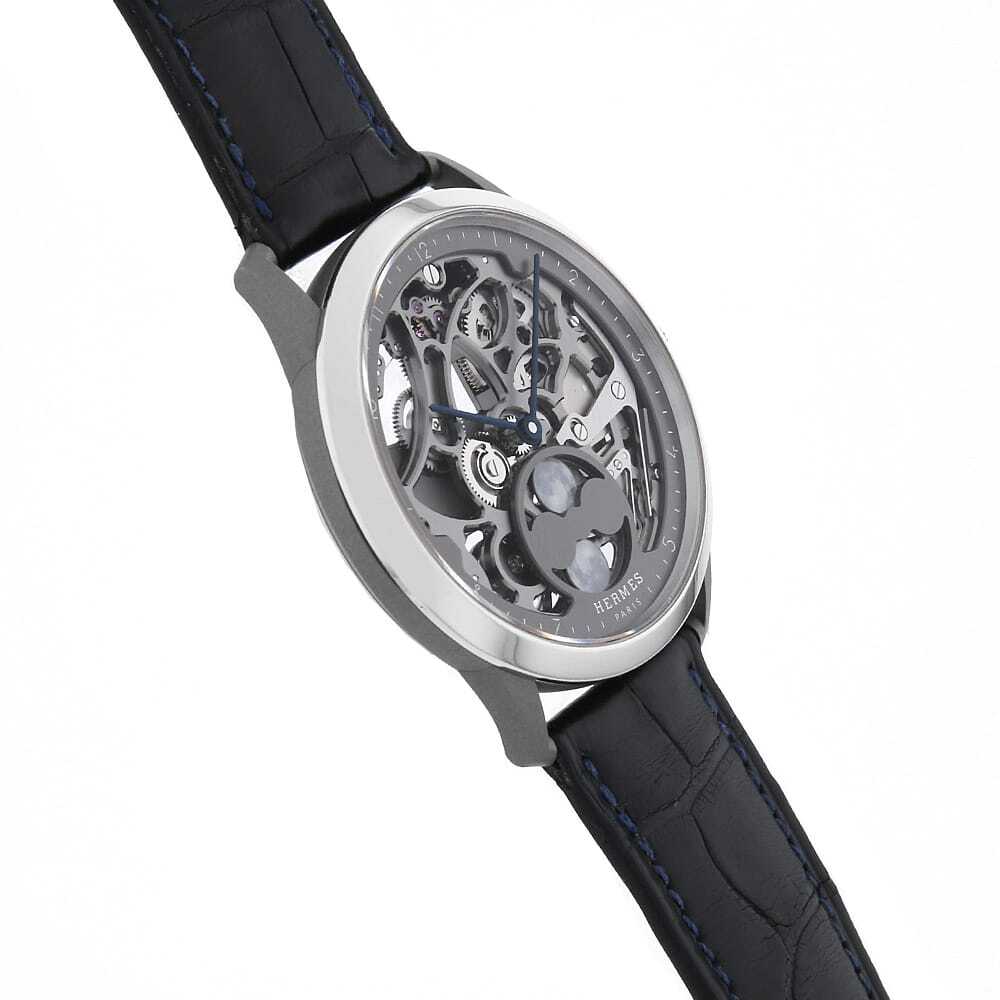 | モデル情報 | 2020年にマイナーチェンジし、現代的に生まれ変わった薄く美しいスタイルが特徴的な「スリム ドゥ エルメス」が入荷しました。その特徴的な薄さや軽さにスケルトンダイアル、チタンのケースとプラチナのベゼルなどの異素材を巧みに組み合わせた外装が個性的な雰囲気を纏っています。 |