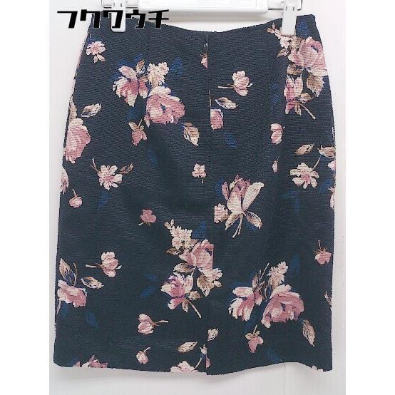 ◇ NATURAL BEAUTY BASIC ナチュラルビューティーベーシック 花柄 膝丈 台形 スカート サイズM ネイビー レディース