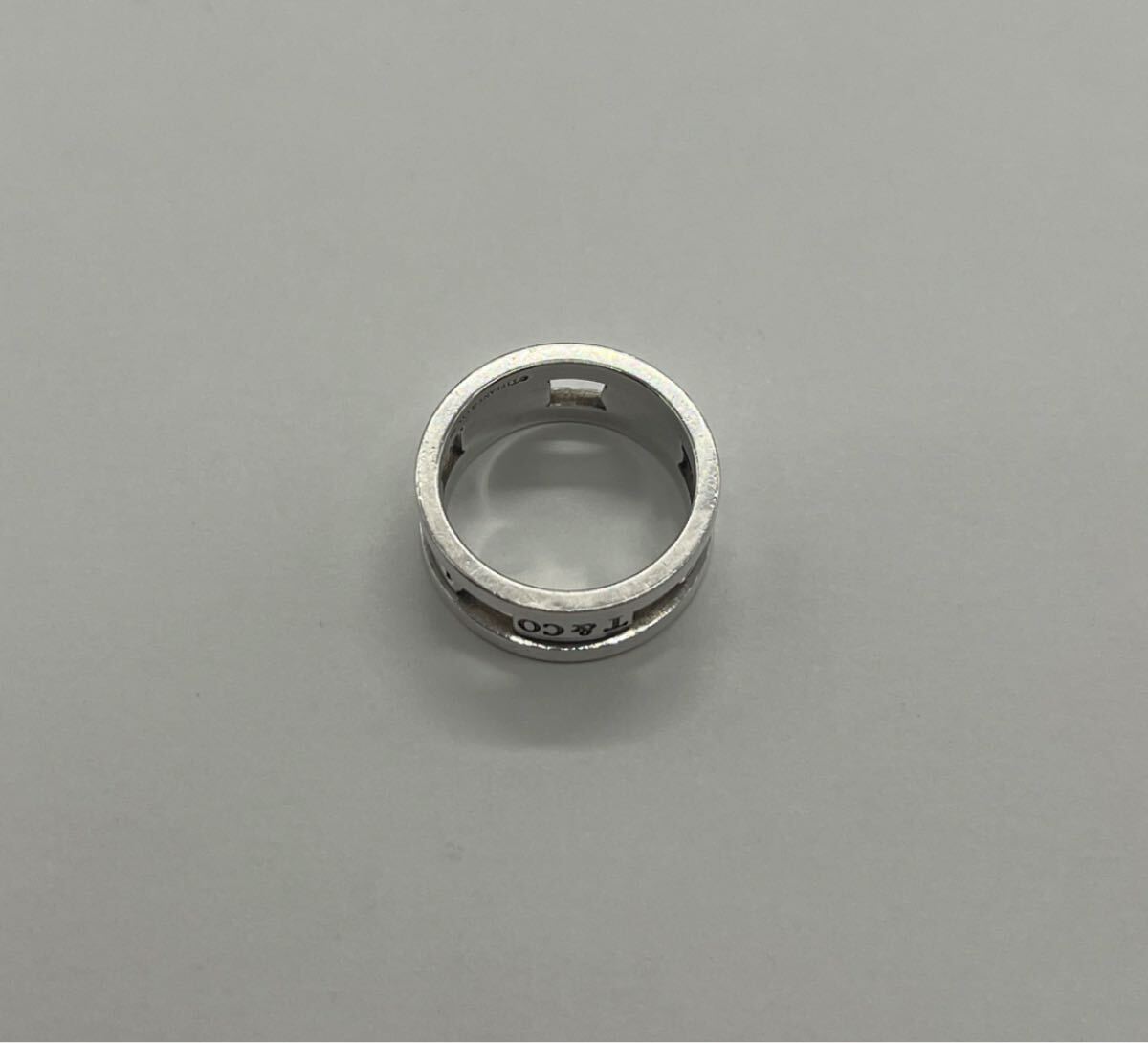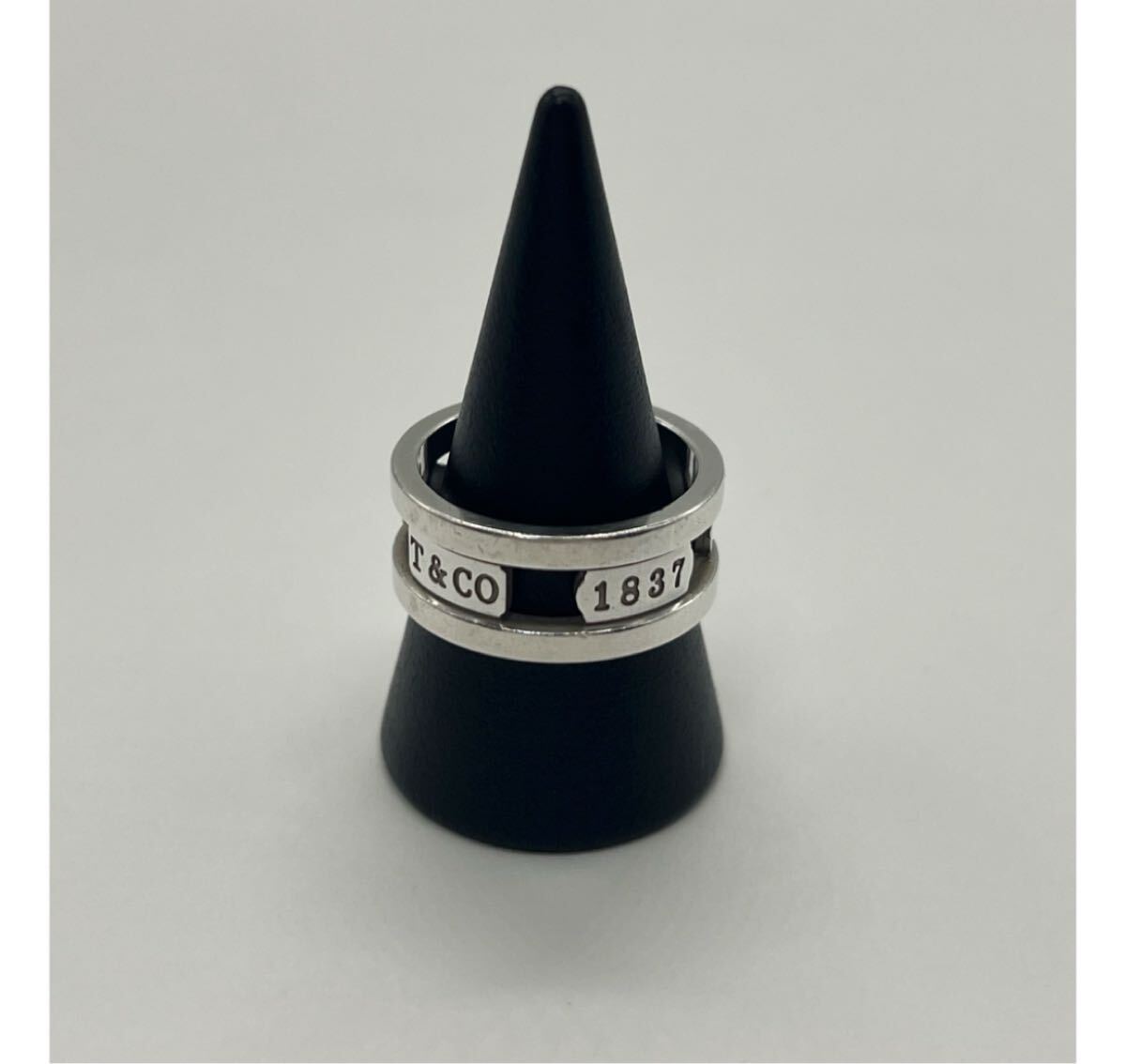 ティファニーの創業年が刻印された1837コレクションのアイテムで、[T&CO][1837][925]の刻印の間がオープンになっているデザインになっており、一目でティファニーと分かる存在感がございます。