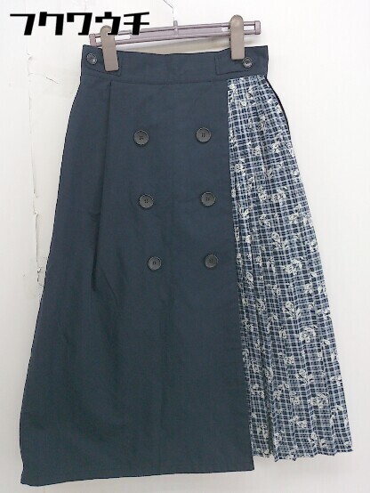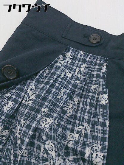 ◇ Simplicite シンプリシテェ 切替 花柄 膝下丈 デザイン スカート サイズM ネイビー ホワイト レディース