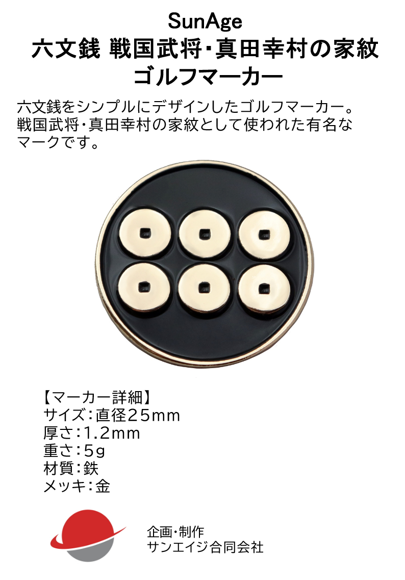 六文銭(ろくもんせん)をシンプルにデザインしたゴルフマーカー(ボールマーカー)です。