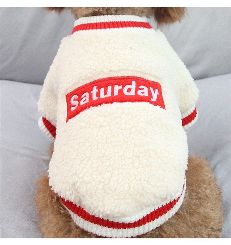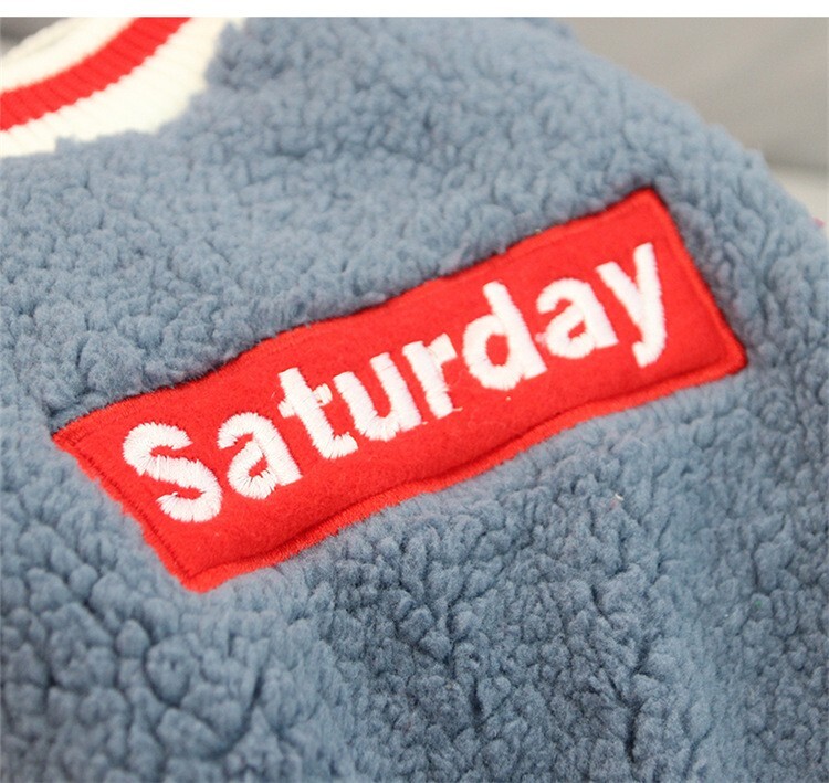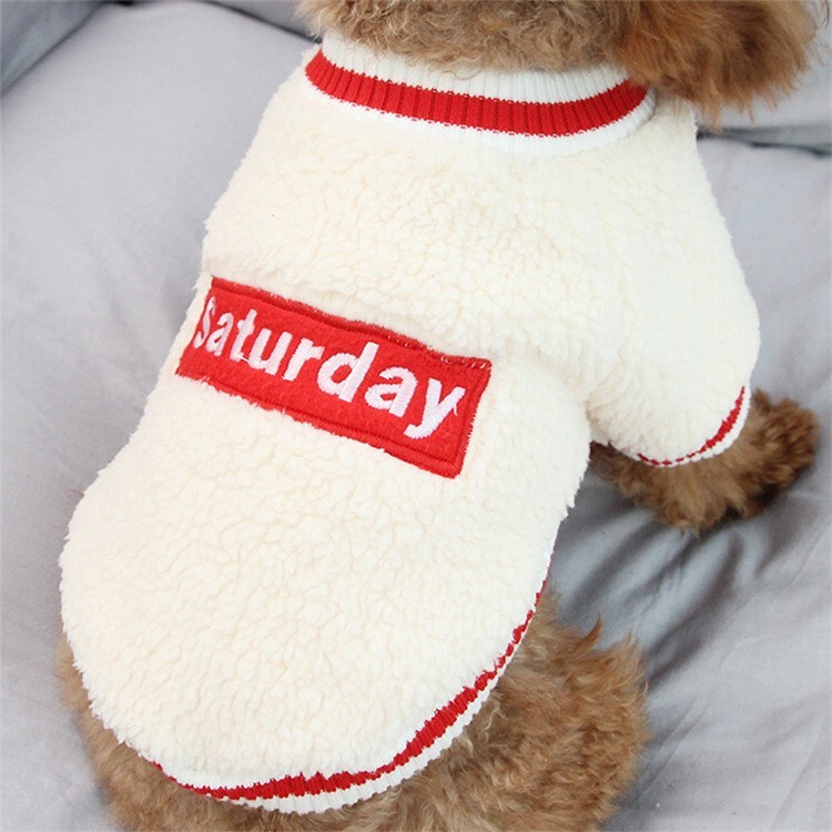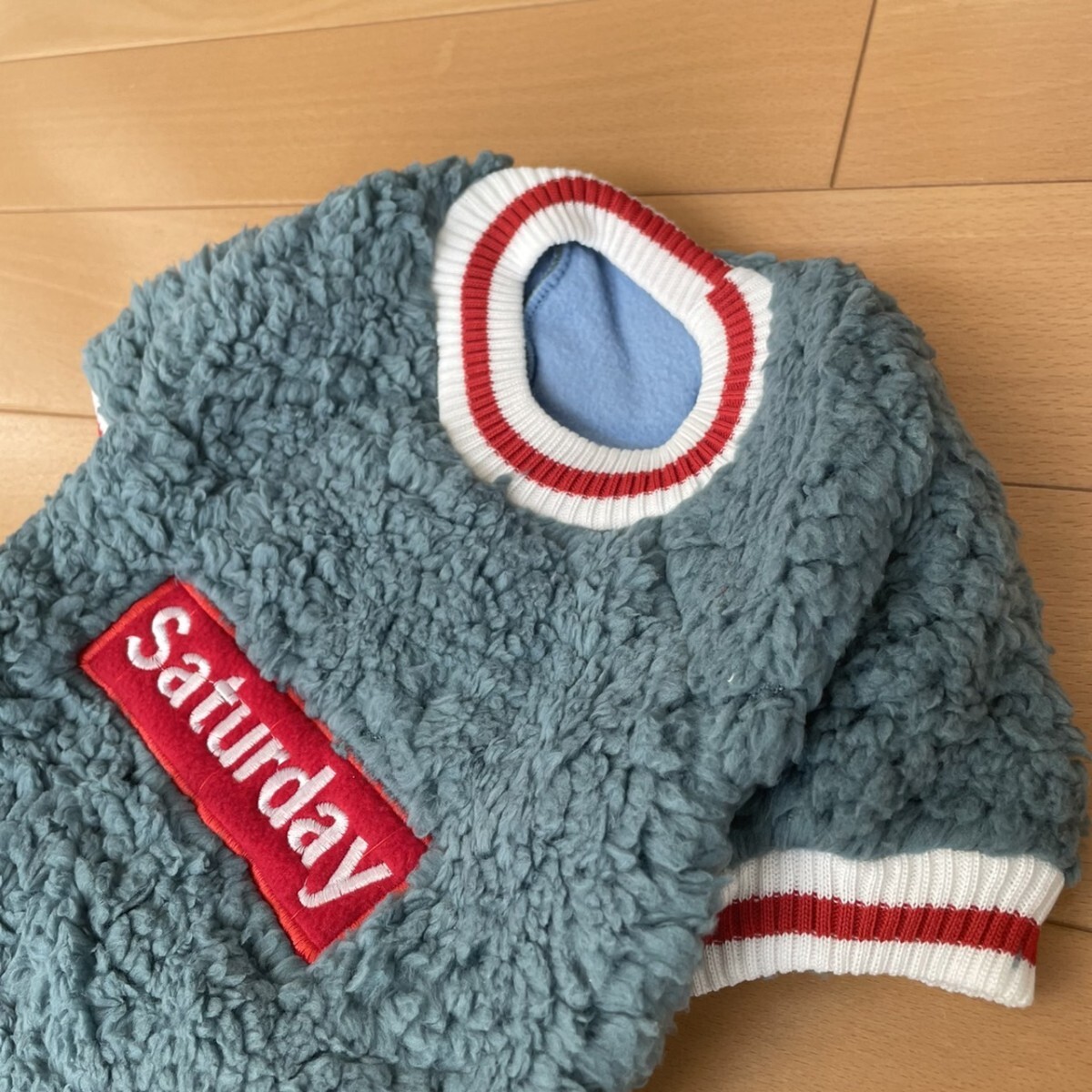 【あったか伸縮】Saturday刺繍 もこもこトレーナー 犬服 パグ・フレンチブルなど小型犬用 ペットウェア 冬服