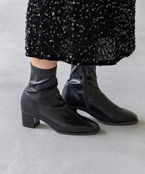 キーワード:ブーツ レディース ショート チャンキーヒール ヒール 秋 冬