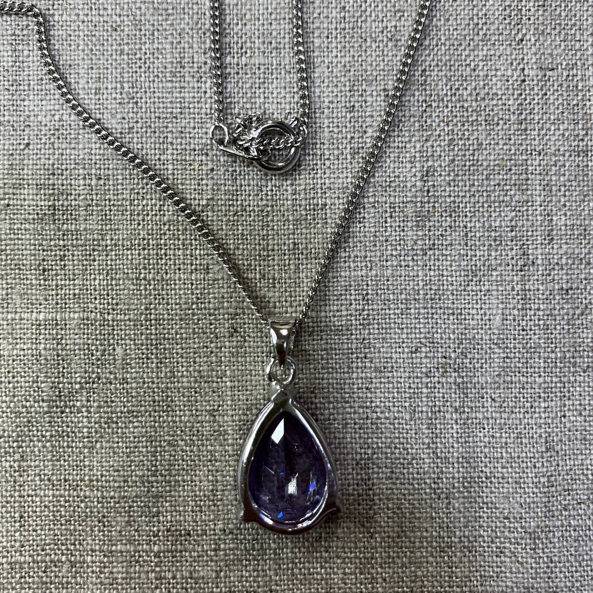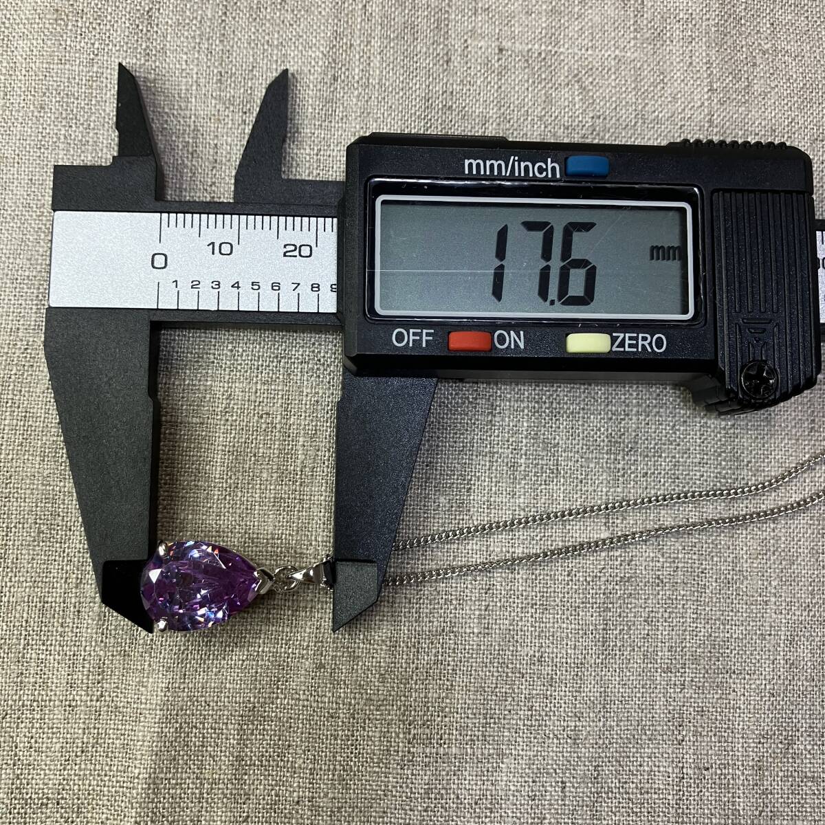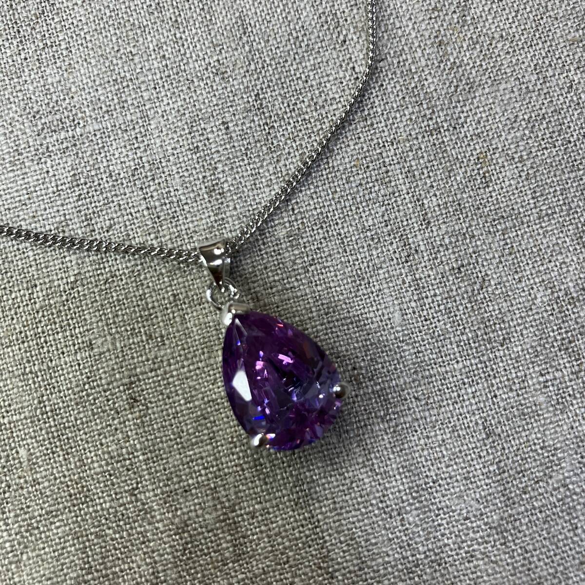 【一点もの】 大粒しずく型 紫石 ドロップネックレス シルバーカラー 華やか 中古 良品