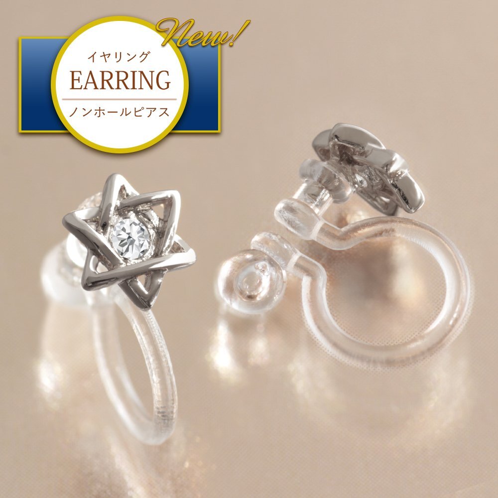 新品/イヤリング/K18GP/レディース/星/スター/シンプル/シルバー/18金/18kコーティング/ホワイトゴールド/樹脂/金属アレルギー/ダイヤ/CZ
