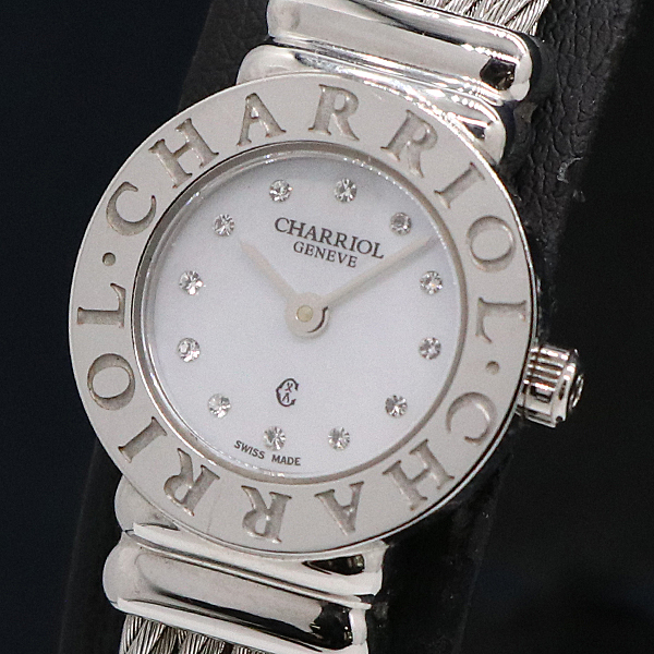 1円 稼働 フィリップシャリオール サントロペ ST20 QZ シェル文字盤 レディース腕時計 0037400 11BJT KMR