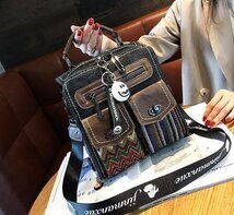 新作★超人気★レトロエスニック牛革3斜め掛けデニムでワンショルダーバッグ