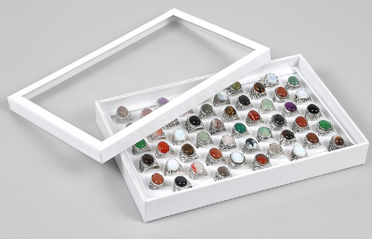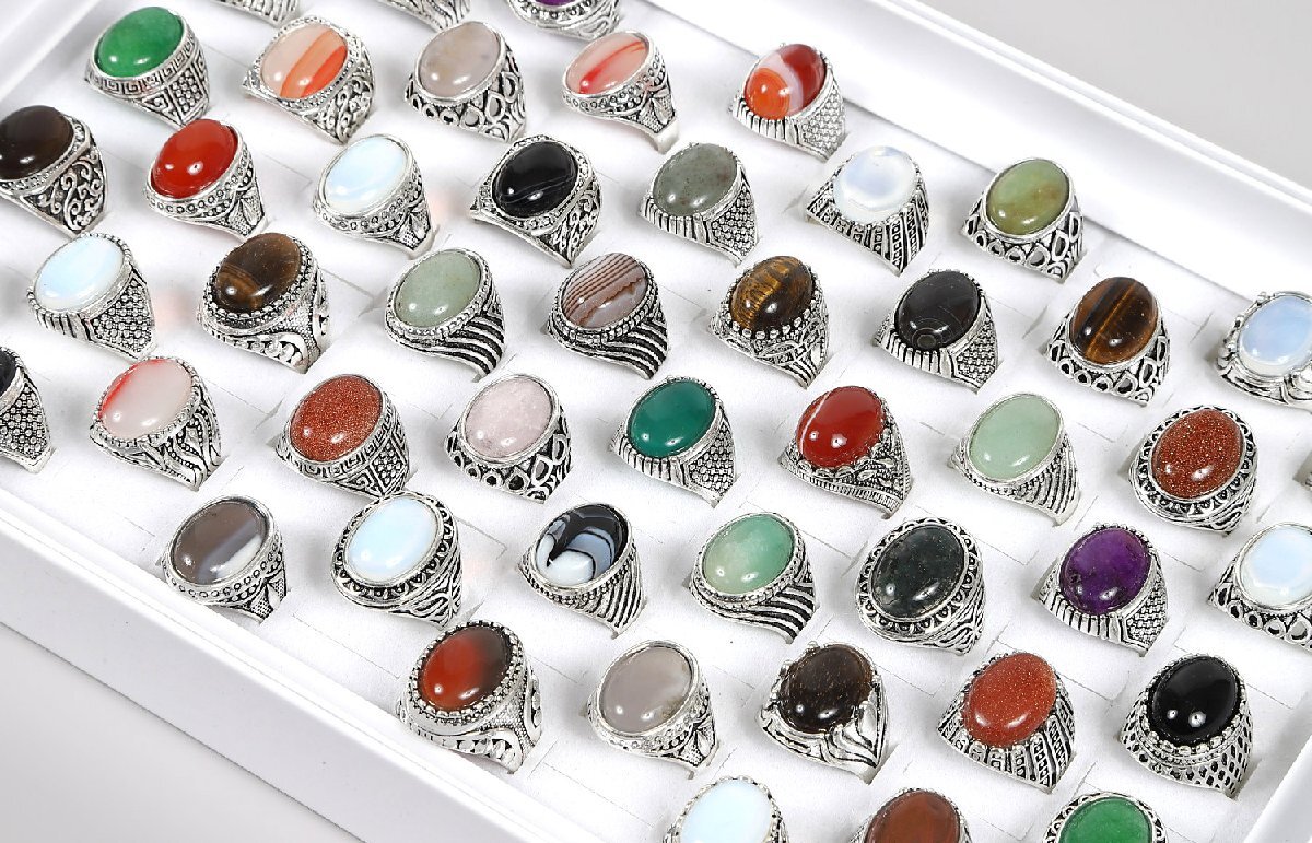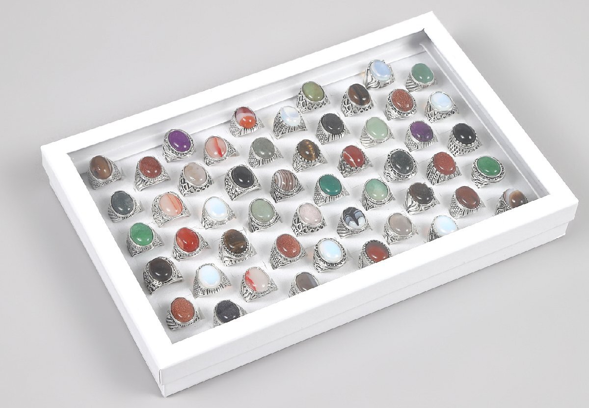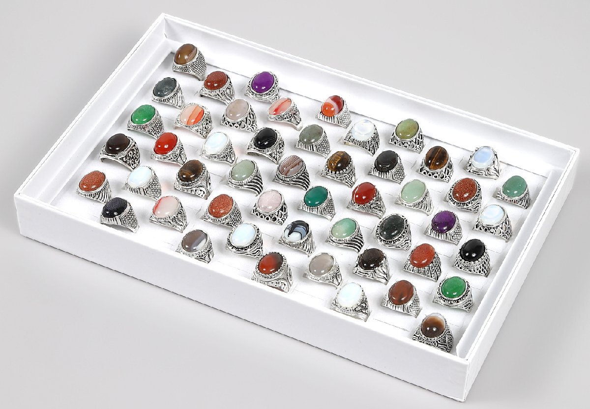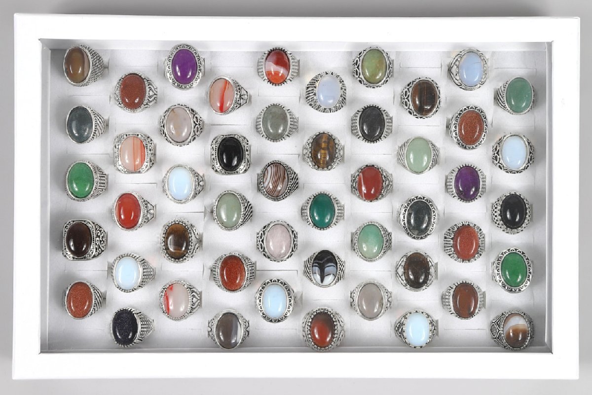天然石 指輪 まとめて50点セット 全て天然石のファッションリング 50点セットです。 とても丁寧に研磨されており、艶、色味ともに非常に美しいものです。 指輪のデザインは写真を参考にしてください。 商品は写真のように指輪のデザイン、カラーをランダムに50点選んで発送いたします。 (選ぶ際には偏りがないようにいたします。場合によっては写真にはないデザイン、カラーになることもあります。) サイズ:約16~20mm=約10~22号 材質:メノウ オニキス タイガーアイ等の天然石 個数:50点 ※写真のようにケースに指輪50点を収めた状態で発送いたします。 (ケースはロットによってデザインやカラーが違う場合があります。) ※ケースはおまけとして出品しますので、ケースの不具合に関しては対応はできません。 当店の他の出品商品との同梱料は下記のとおり落札1点につき200円です。 |