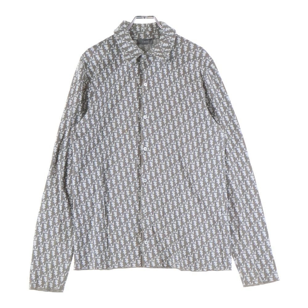 DIOR ディオール 20SS Oblique Overshirt 023M550AT099 オブリーク 総柄コットン長袖オーバーシャツ グレー/ベージュ
