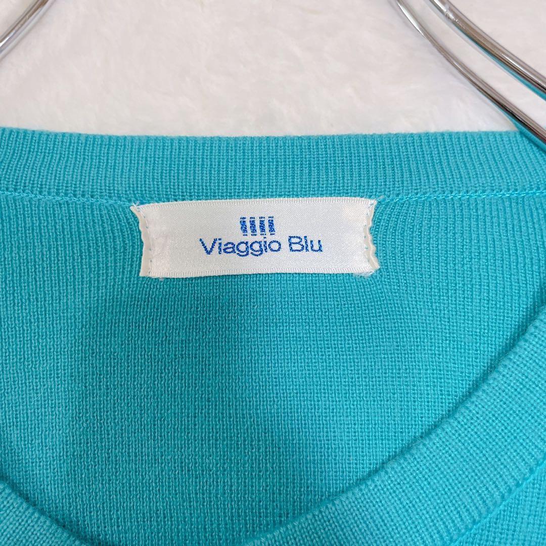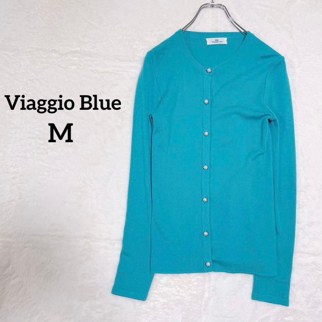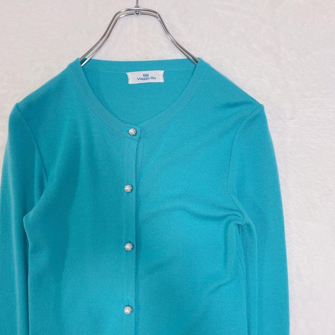 【ビアッジョブルー】ニットカーディガン アンゴラ混 パール釦 ビジュー 8811A8