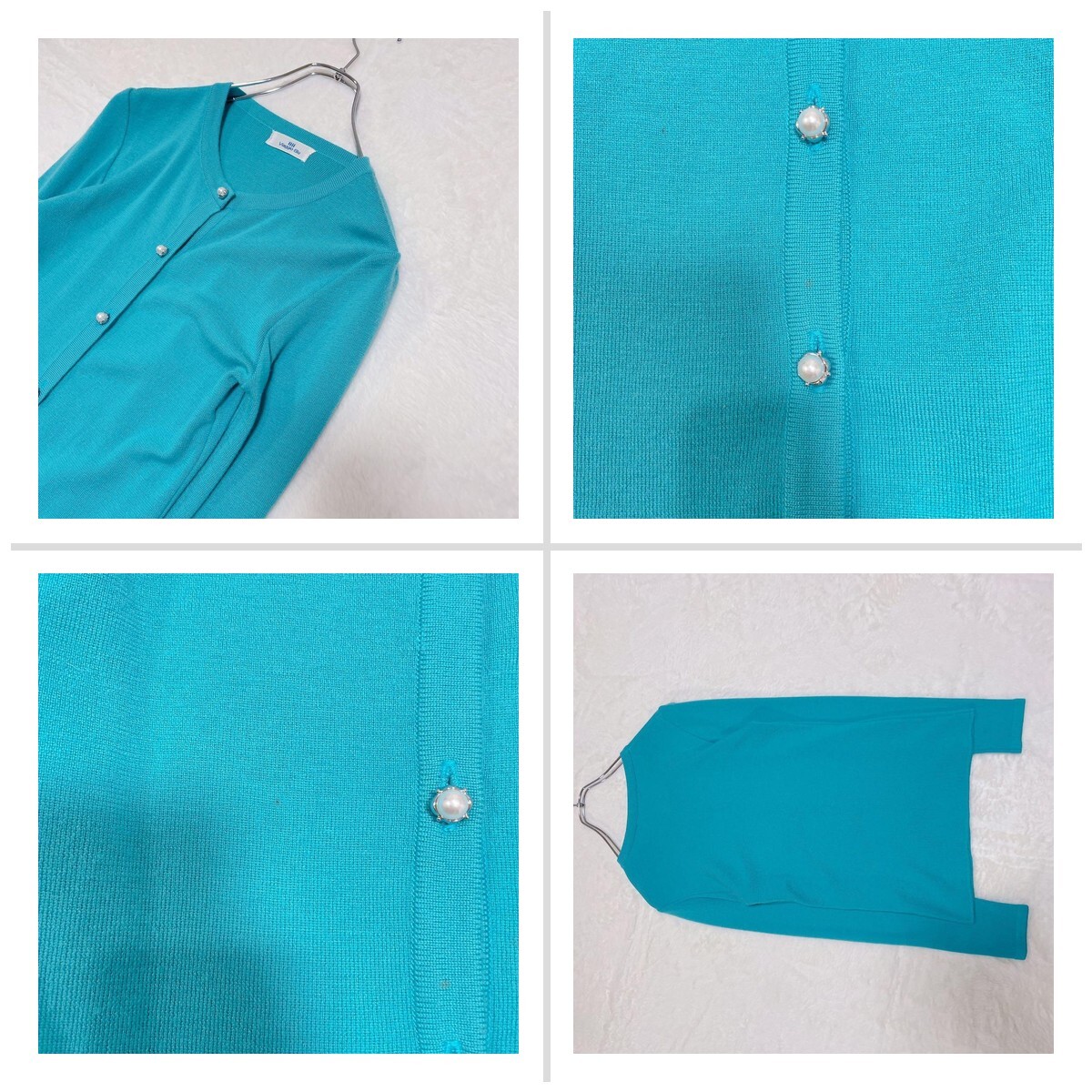 【特徴】・上品なパールボタンデザイン・アンゴラ混でふんわり柔らかい肌触り・女性らしいきれいめシルエット・春先〜秋まで長く使える便利アイテム