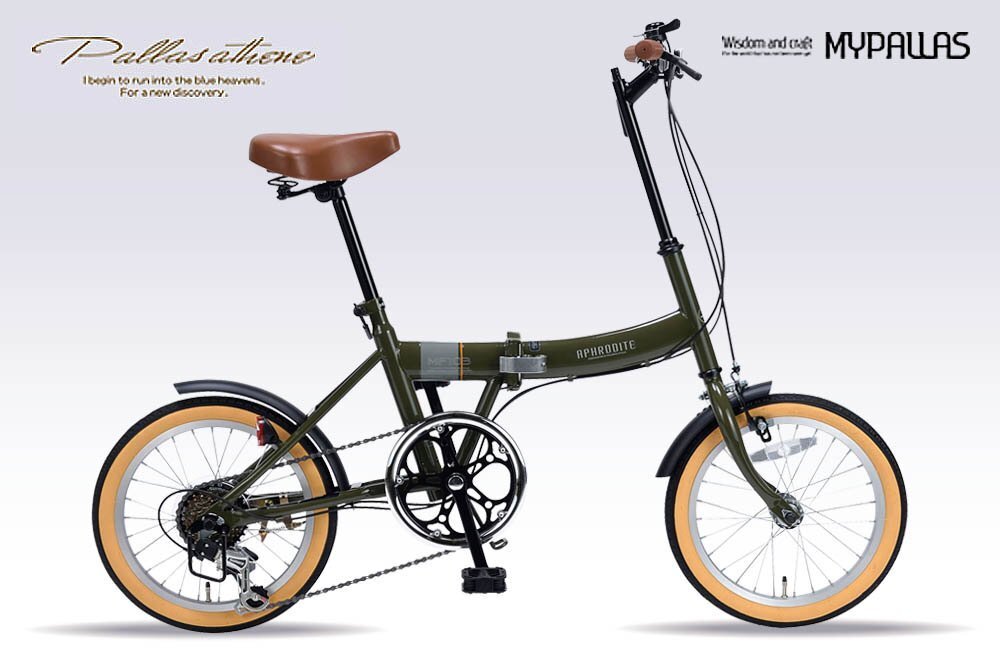 送料無料 折り畳み自転車 16インチ シマノ製サムシフト サイクリング コンパクト PL保険加入済み 適応身長135cm以上 ミリタリグリーン 新品