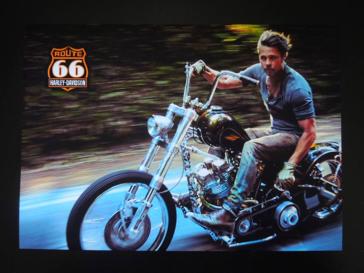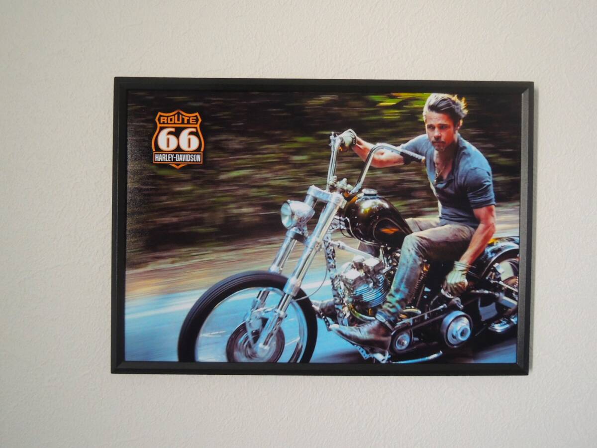 A4 額付き ポスター ブラッドピット Brad Pitt バイク ブラピ ROUTE66 チョッパー バイク アメリカン 写真 ジョッキー シフト