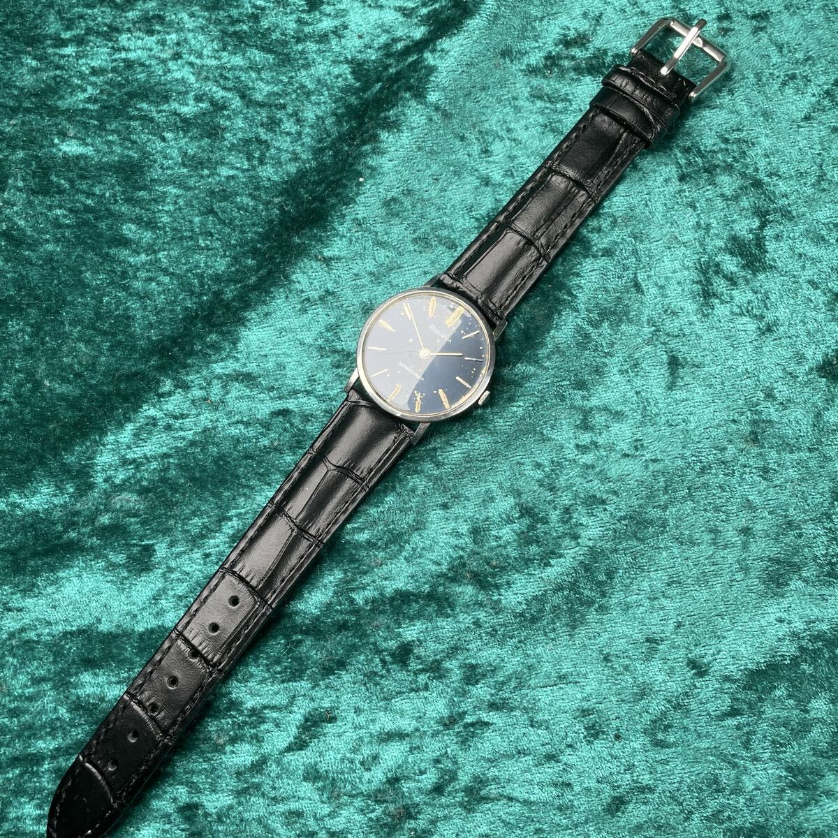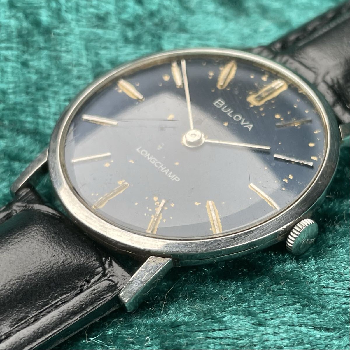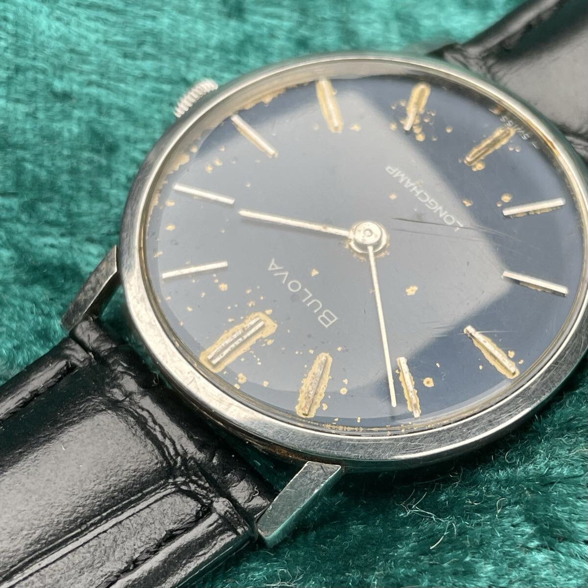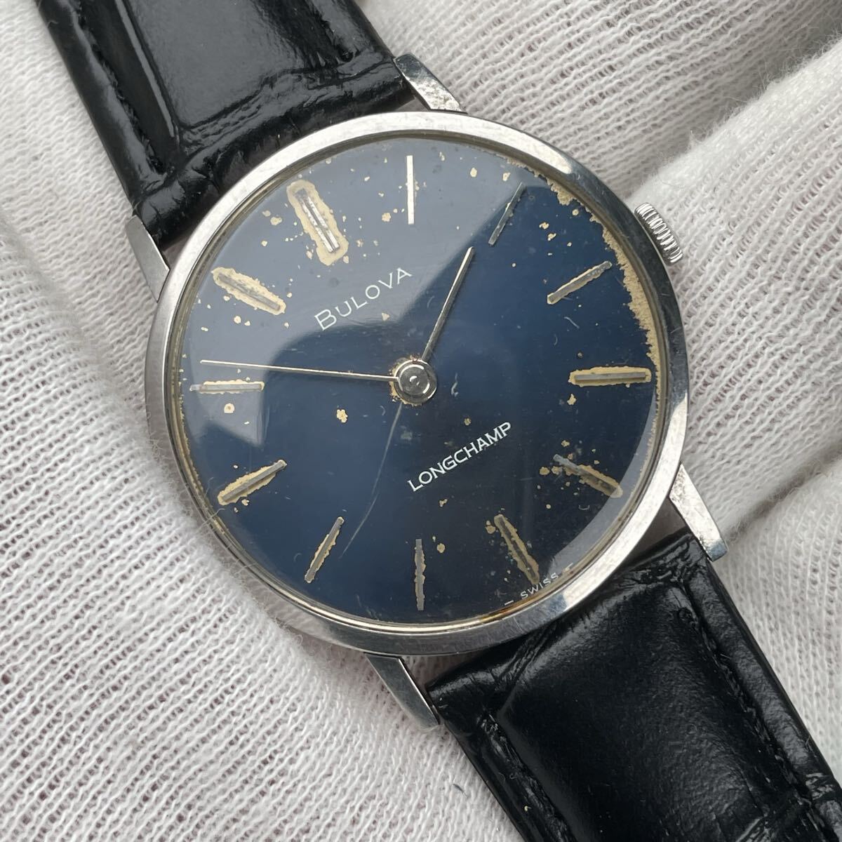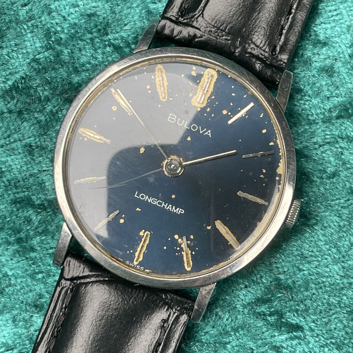 ビンテージ BULOVA LONGCHAMP ブローバ ロングキャンプ 機械式手巻き ブルーダイヤル SS