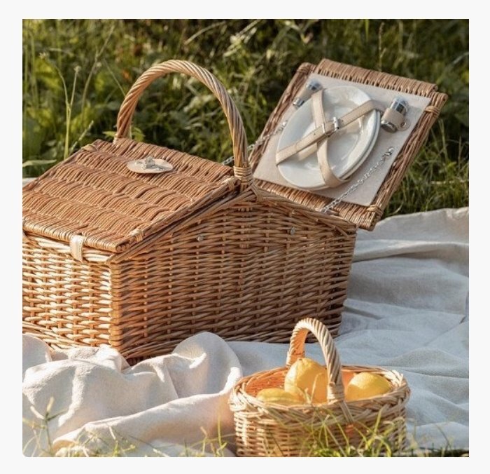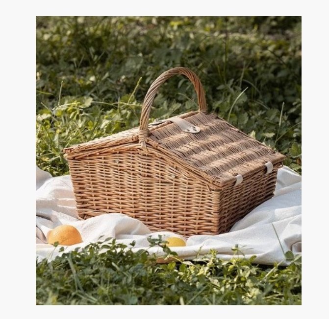 職人の手作り★柳の編み物み上げカゴバック  手作りバスケット ナチュラル買い物カゴ 収納バッグ 食器セット付き 野外キャンプ