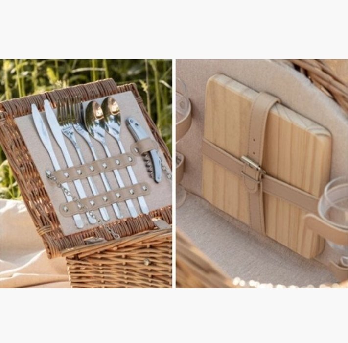 ★内容物:ナイフ、フォーク、スプーン各 2 セット、皿 2 枚、コップ 2 個、調味料 2 種類、まな板 1 枚、多機能ナイフ 1 本