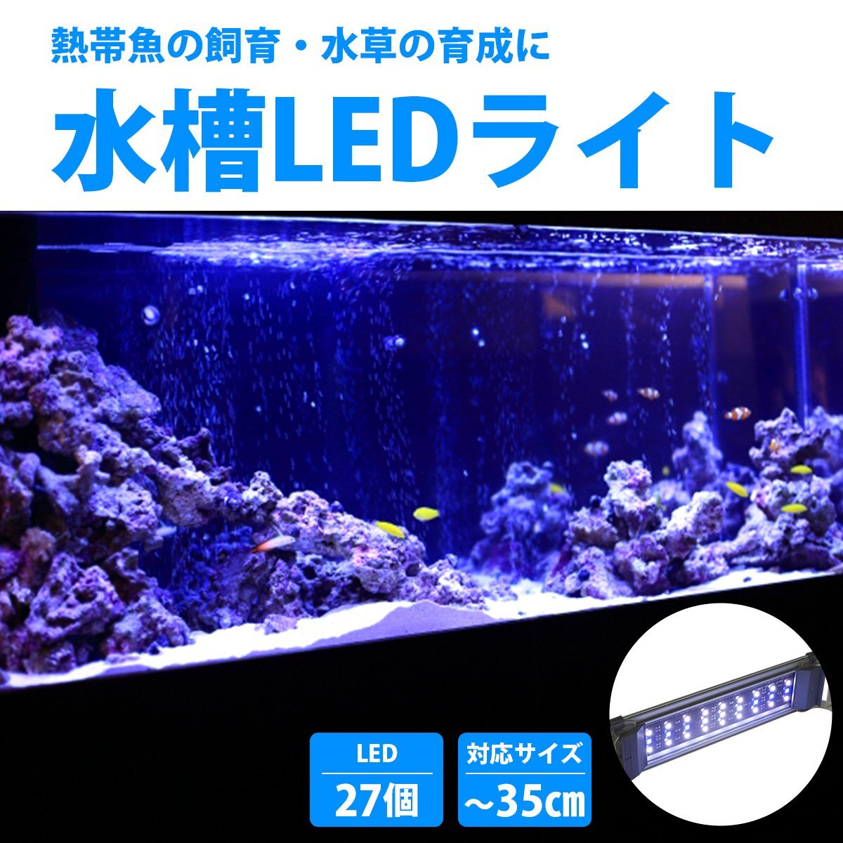 【送料無料】30cm-35cm 水槽用 照明 LED ライト ブルー×ホワイト 青/白 シルバー枠 アクアリウム ライト LED 照明 水槽 サンゴ 熱帯魚