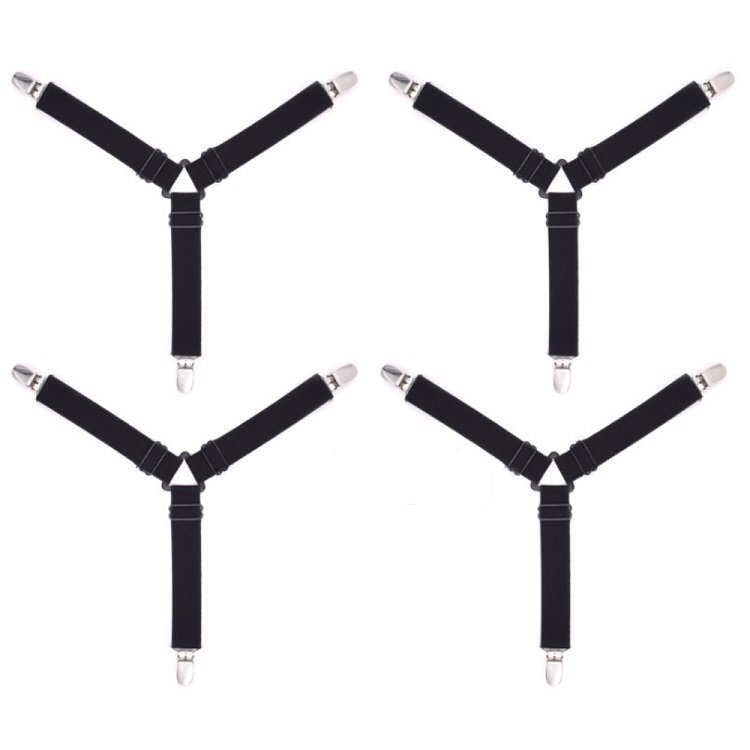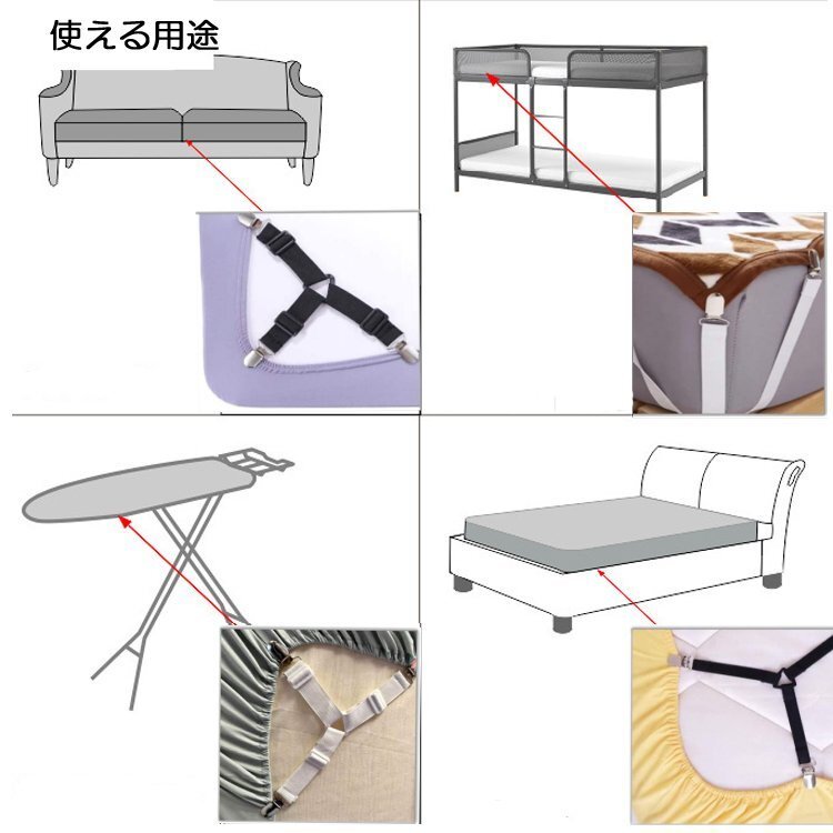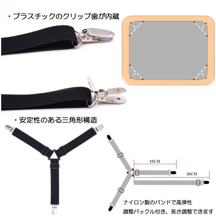 ◆ベッドシーツクリップ4個セット 三角形ゴムバンド ズレ防止 調節可 三角形ゴムサスペンダー シーツの四隅を固定 滑り止め コーナー止め ソファー マットレスカバーにも CS0154S/ブラック