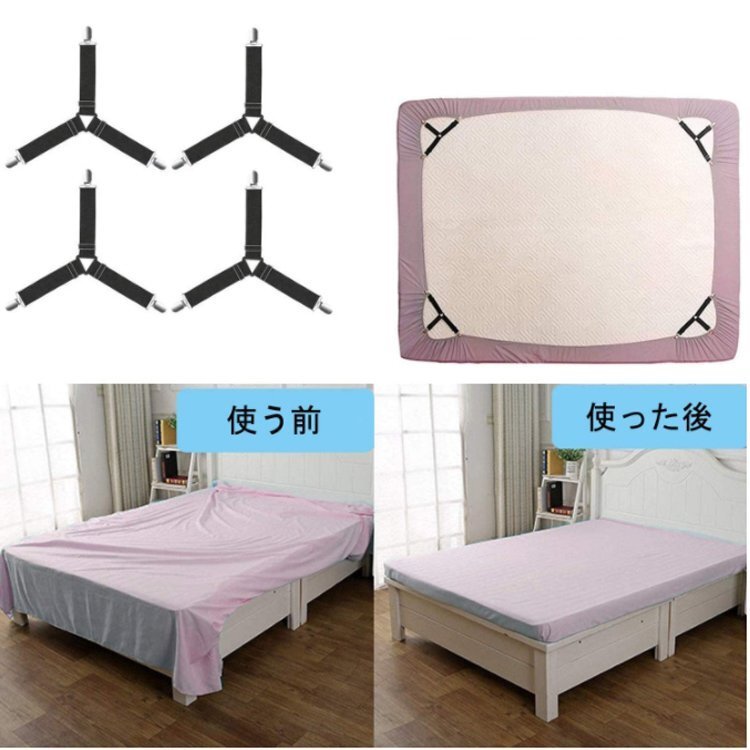 取り付け簡単、シーツの四隅を固定し、シーツの乱れを防止することができます。