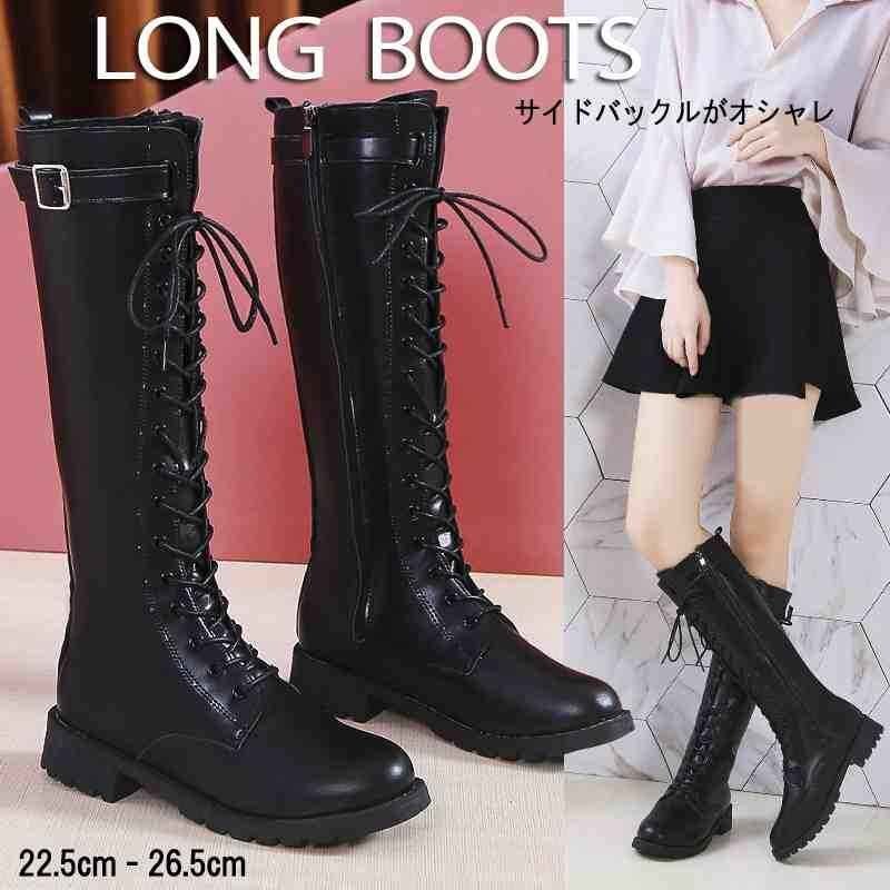 サイドバックルがおしゃれで美脚効果◎レディースロングブーツ