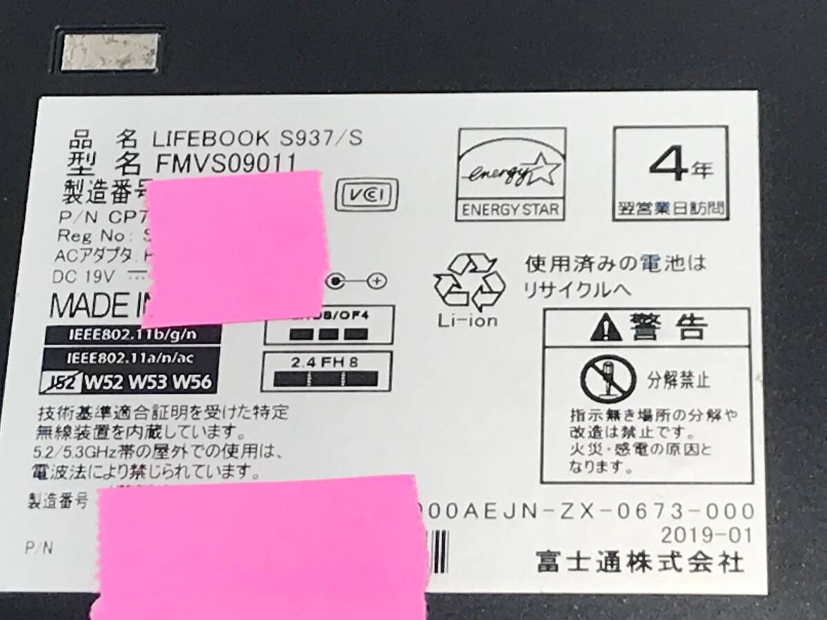 【記憶媒体無】FUJITSU/ノート/第7世代Core i5/メモリ4GB/WEBカメラ有/OS無/Intel Corporation HD Graphics 620 32MB/ドライブ