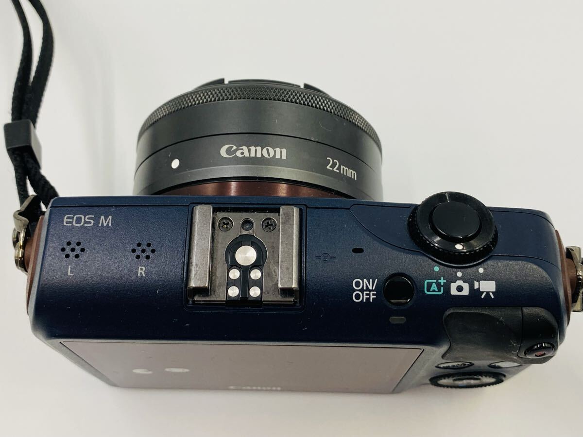 ◯ Canon EOS M ベイブルー ミラーレス一眼カメラ EF-M 22mm 1:2 STMレンズ 充電器欠品 動作未確認になります。
