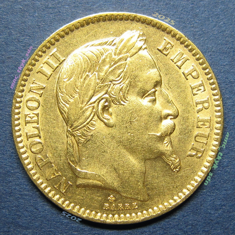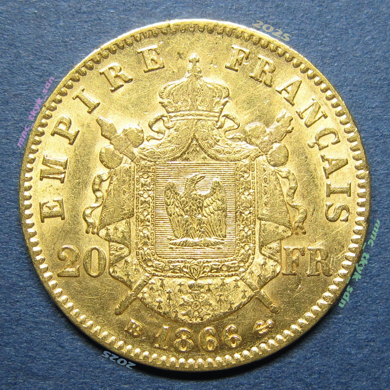 フランス ナポレオン3世 20フラン金貨 1866BB