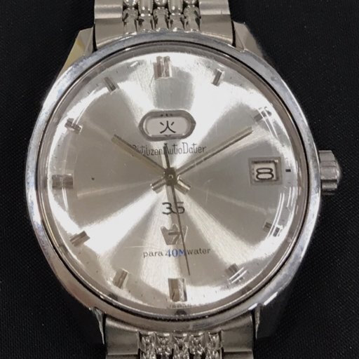 | シチズン オートデータ デイデイト 自動巻き 腕時計 シルバーカラー文字盤 社外ブレス CITIZEN QH114-102 |