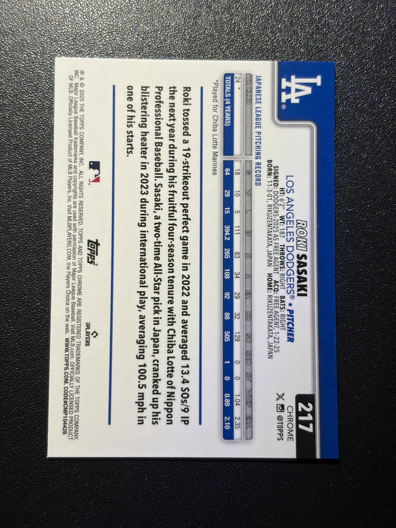 佐々木朗希 2025 Topps Chrome #217 Roki Sasaki Topps ドジャース MLB カード RC ルーキーカード