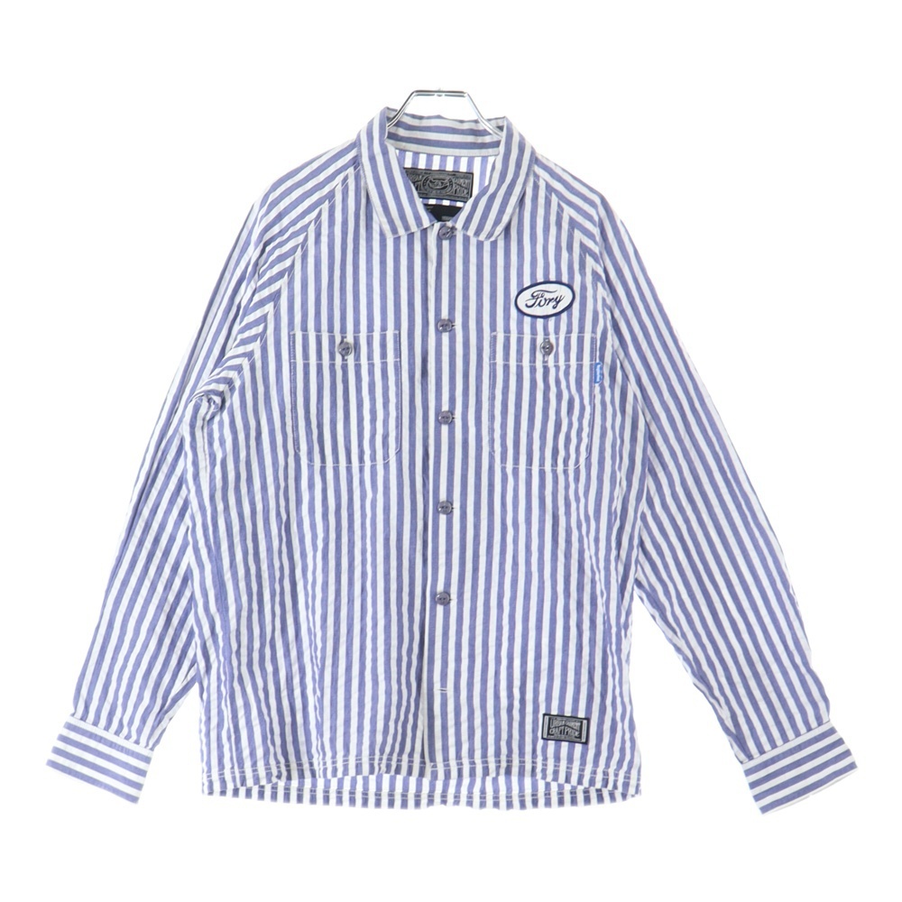 品名フロントワッペン付 ストライプ 長袖シャツ ホワイト TSNH-SH-M02