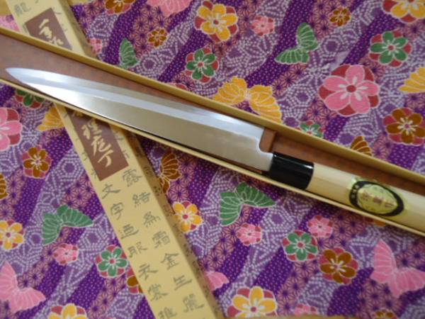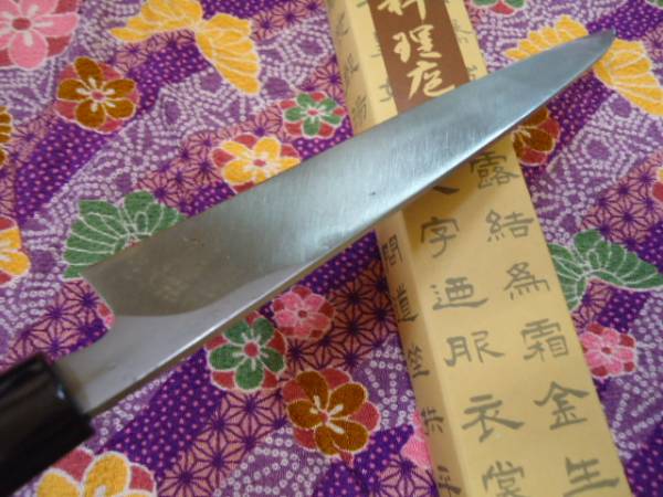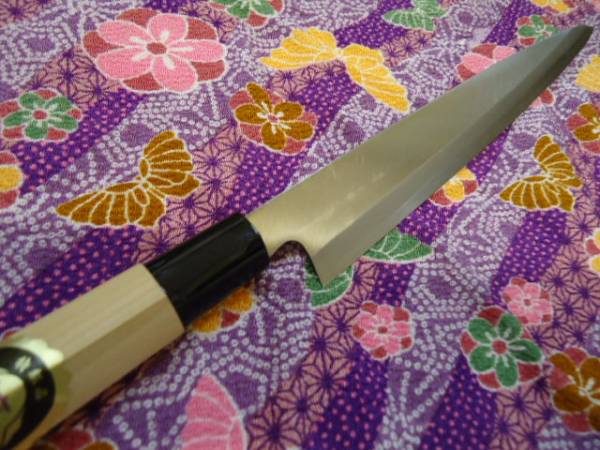 | アクセスいただきましてありがとうございます。 必ず、説明文・注意事項をよくお読みの上入札をお願いします! 【*送料変更! *送料が明記してありますが、令和元年10月より佐川急便新価格に変更します。予めご了承ください。】 限定特別価格で数丁出品。 一般家庭用の210mm 右利き用 《刃渡り》 210mm 《重 量》 99g 《最大巾》 32mm 《厚 さ》 2mm 《刃 材》 安来はがね 《地 鉄》 軟鉄 《 柄 》 朴プラ柄 《化粧箱》 なし *手造り品の為、若干の誤差はあります。 ☆ 備 考 新品の刃物は・・・ *本来刃物はメーカーより機械研ぎで入荷します。砥石で研いだ刃物の入荷は殆どありません。もちろん新品の切れ味はありますが、本当の切れ味をお望みであれば・・・ 新品もまず砥石で研いでご使用された方が、本来の切れ味が楽しめます。 本刃付けも承っております。ご希望の方は取りナビにてご連絡ください。 【6000番仕上げ砥石】三徳包丁 500円 出刃・刺身 700円~材質・サイズによって変わります。 《お取引の流れ》 ・落札後こちらから取りナビでご連絡します ・お客様の情報を取りナビでご連絡下さい ・ご入金確認後、当日発送に努めます ・発送後、追跡番号をお知らせします |