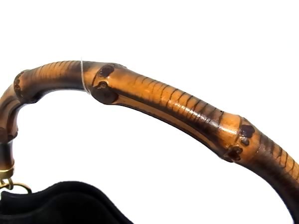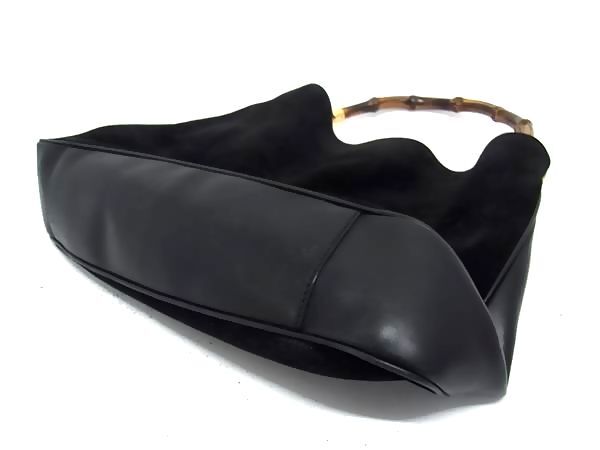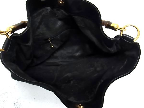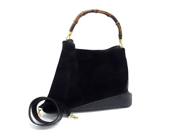 1円 GUCCI グッチ 001 3754 1577 バンブー スエード×レザー 2WAY ショルダー ハンドバッグ レディース ブラック系 BN6282